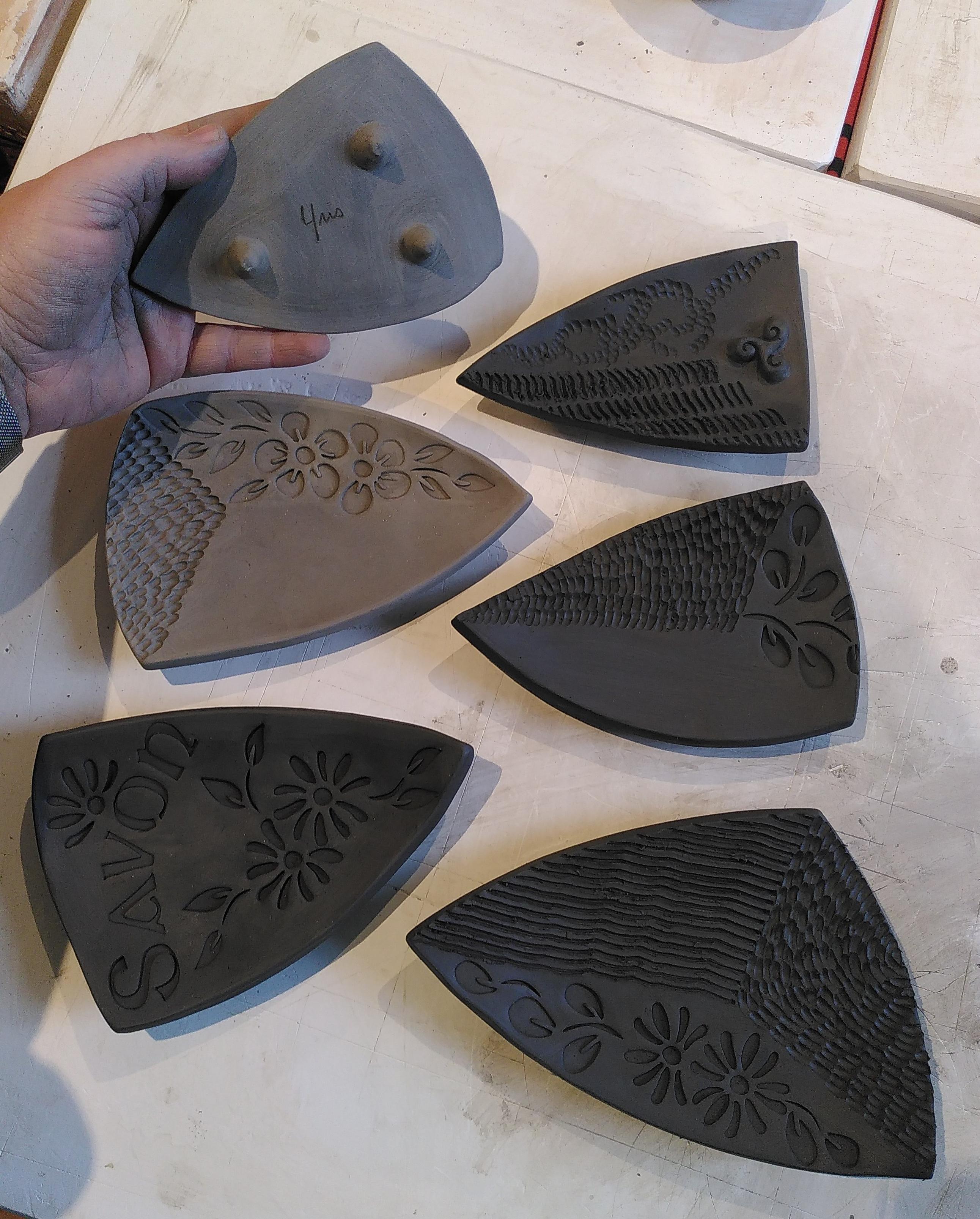 Les (très bonnes) tartelettes Poire / Amandes n'auront pas survécu à ce WE et il nous restait à récupérer nos créations en céramique. Chose faite aujourd'hui même.