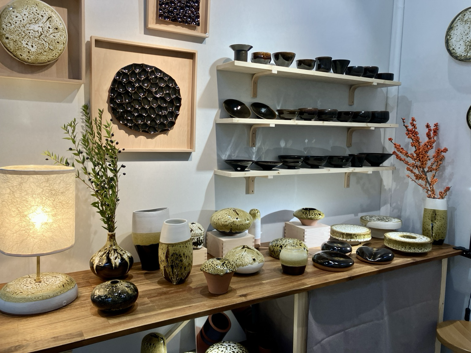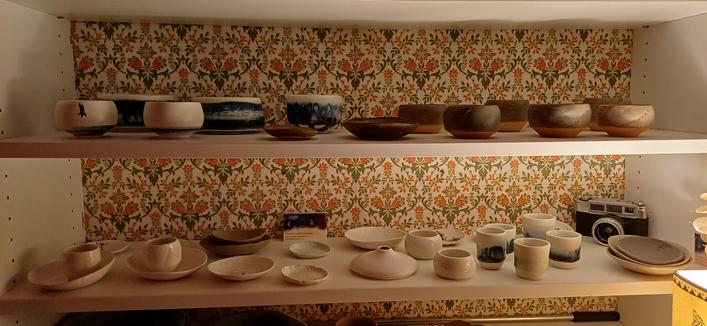 Céramiques exposées au café des voyageurs