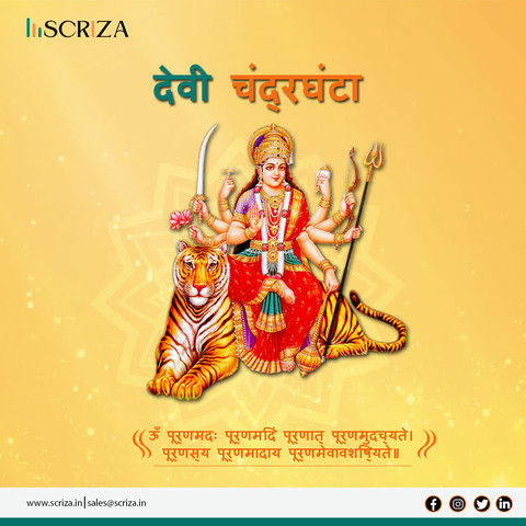 On Day 3 of Navratri, we worship Maa Chandra ghanta – the goddess of courage and serenity. 🌸 May her blessings remove all negativity and fill your life with peace and strength.