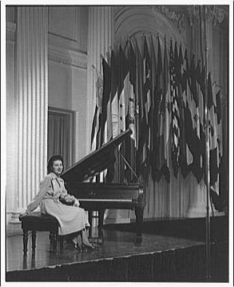 Senora Herminia Raccagni of Chevy Chase. Portrait at piano in Pan American Union II 1947 Dec.