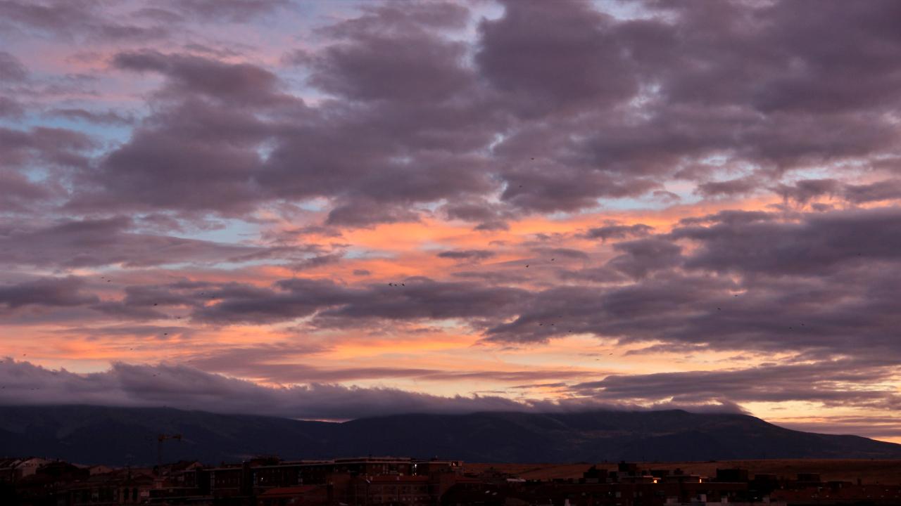 Nubes del atardecer en el cielo de Segovia, nubes del atardecer, sobre la sierra de Guadarrama.