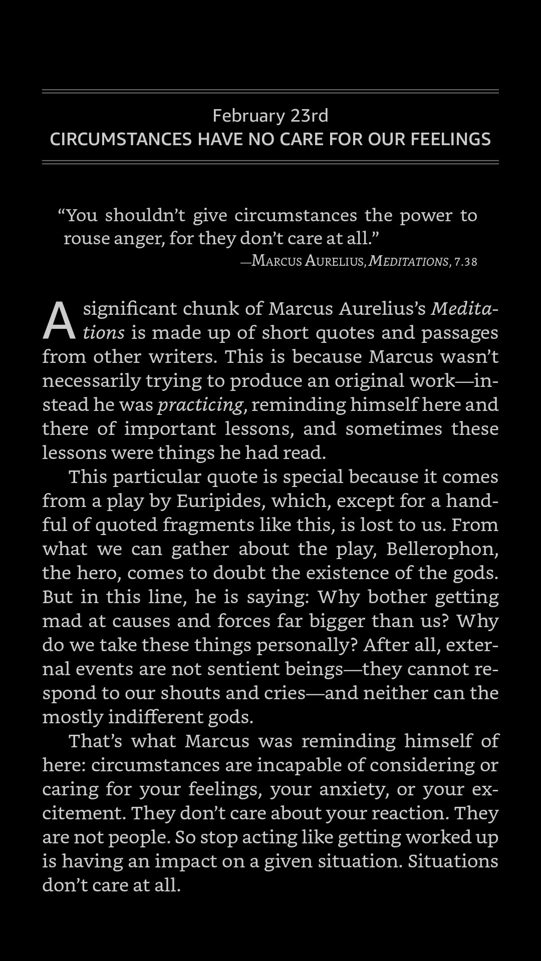 These February 23rd readings from The Daily Stoic and 365 Tao both seem particularly apt right now: