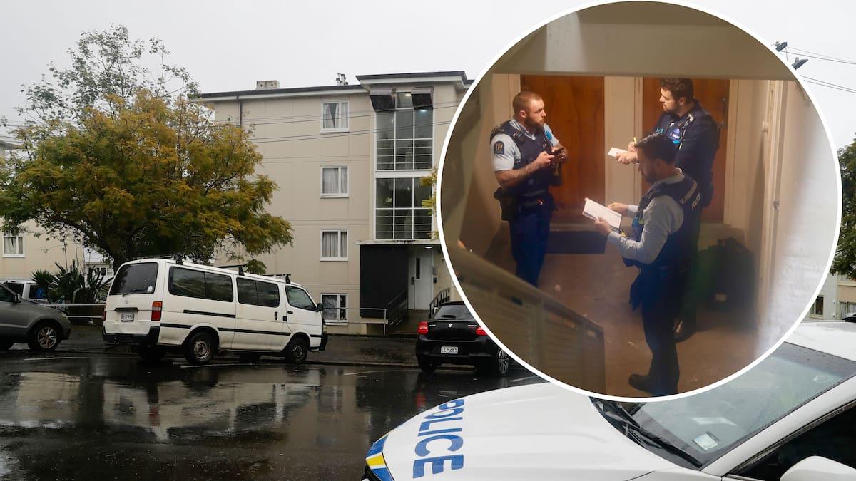Officers carry equipment inside an apartment block on Cracroft St, Parnell after a woman died in “unexplained” circumstances…