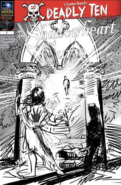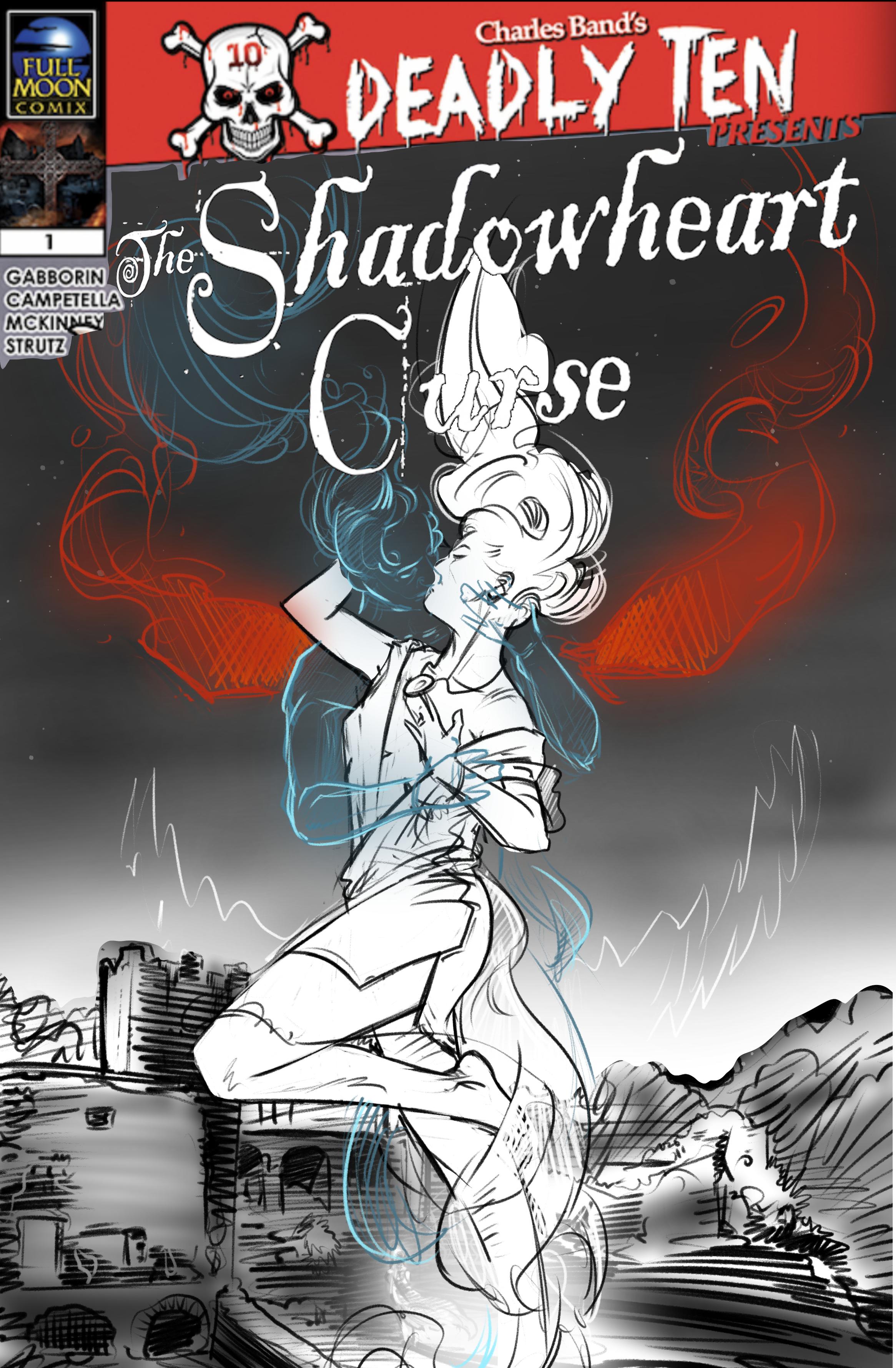 Throwback Thursday! Shadowheart Curse comic cover from @fullmoonfeatures.bsky.social Deadly Ten comics and the three sketches to get there!