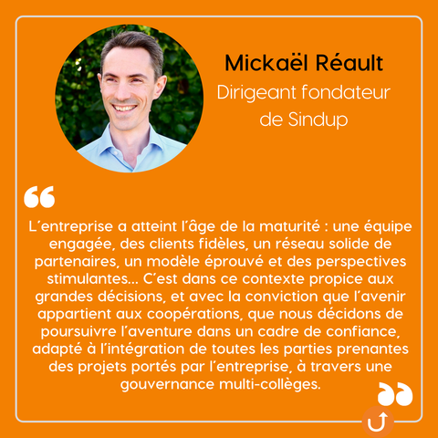 "L’entreprise a atteint l’âge de la maturité [...] C’est dans ce contexte[...] que nous décidons de poursuivre l’aventure dans un cadre de confiance [...] à travers une #gouvernance multi-collèges" Mickael Réault, dirigeant fondateur de Sindup.