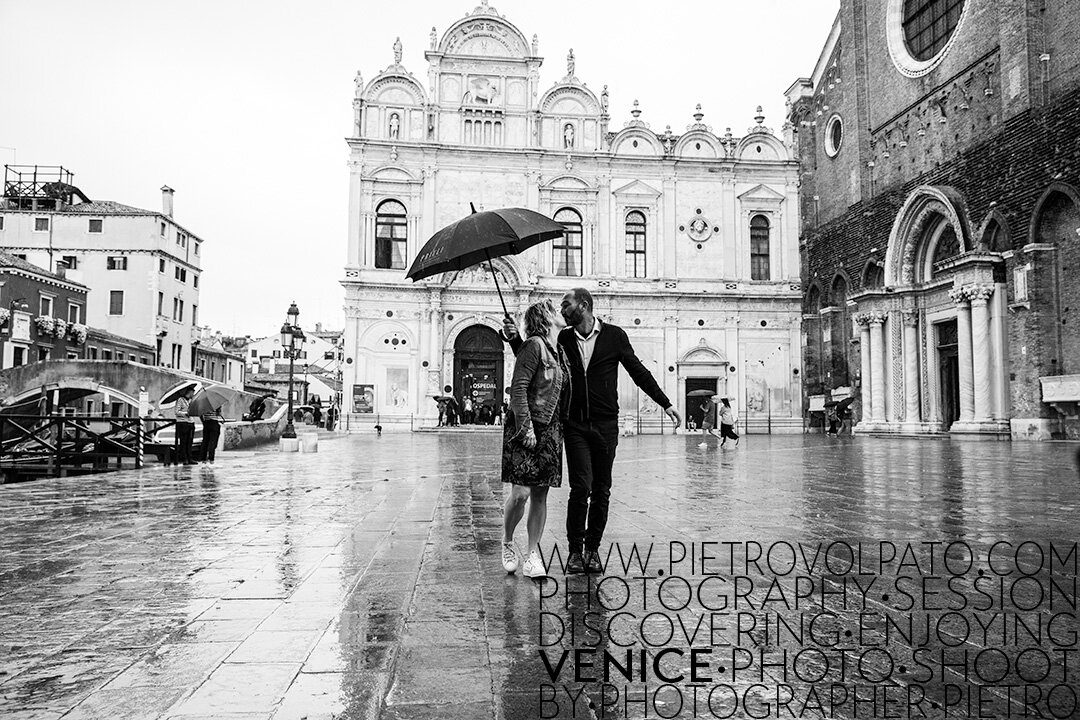 Rain can be truly romantic. Add to that the fact that you're in a romantic city like Venice and strolling with your loved one. This will make the photos and the vacation truly romantic.
