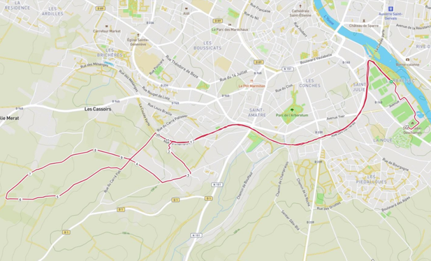Les dossards sont récupérés dès le samedi, instructions précises et maillot de l’évènement offert. Un petit tour de parcours, l’occasion de rencontrer quelques participants. Ligne de départ au niveau du Parc de l’Arbre Sec en bordure de l’Yonne, plutôt étroite sous les platanes, ce sera corrigé l’an prochain, et c’est la traversée d’Auxerre, ville d’Art et d’Histoire, sous un beau soleil par la coulée verte, ancienne voie de chemin de fer qui traverse l’agglomération d’Est en Ouest, l’occasion de découvrir les beaux panoramas de cette cité historique ! Légère montée, 90 m au total, un sol bien adapté pour une poussée efficace, une boucle dans la campagne environnante : sol herbeux, un peu de boue par endroit, pas de difficulté majeure, un beau terrain de jeu pour les compétiteurs que nous sommes !