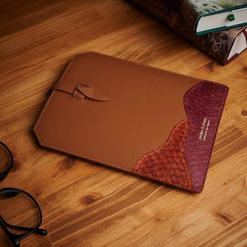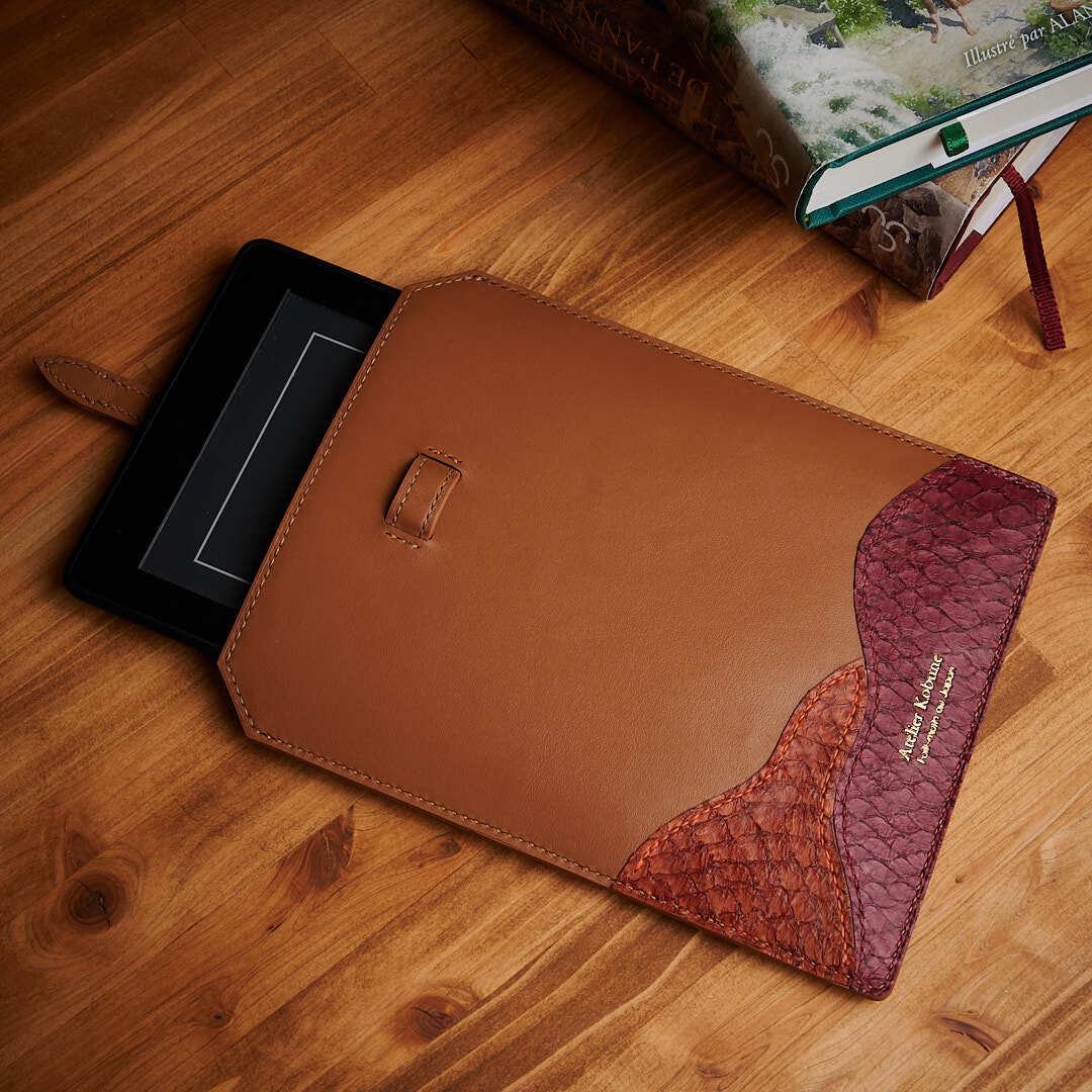 #leathercraft #handmade #kindlesleeve #leathercase #レザークラフト #革小物 #maroquinerie #fishleather #ebookreader #leathergoods #craftsmanship #handstitched