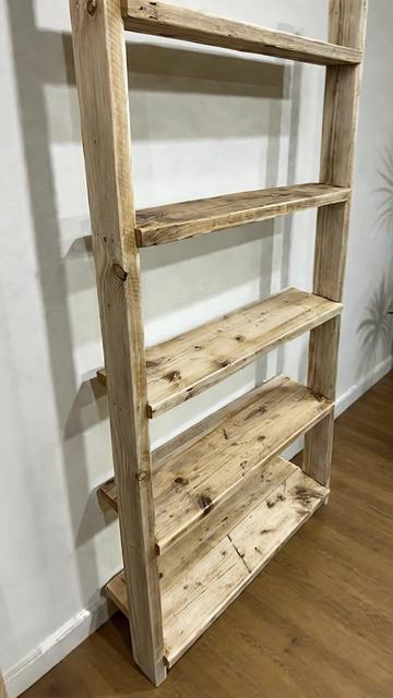 Our 5-tier handmade wooden leaning shelves are crafted to order, combining practical storage with rustic style. Perfect for living spaces, offices, or studios. 🌿🪵✨