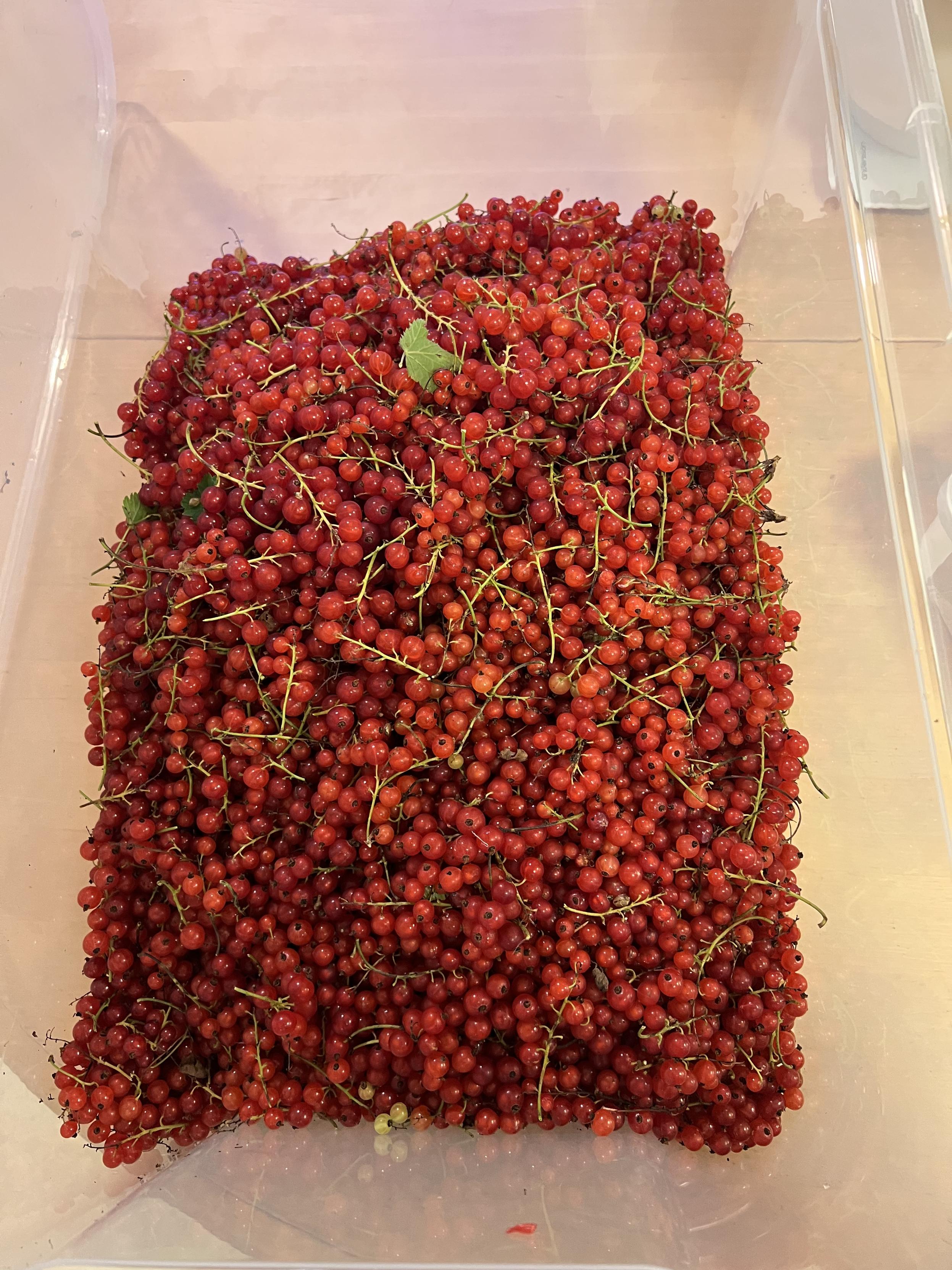 I can't believe we never did this before. We've collected roughly 26 kilo of currant (red and black) for an hour or so a day over the past 3 days, selling it online, and netting us around 180€ so far (there is probably another 20kg or more left to pick). that's a much better hourly wage than i make professionally!