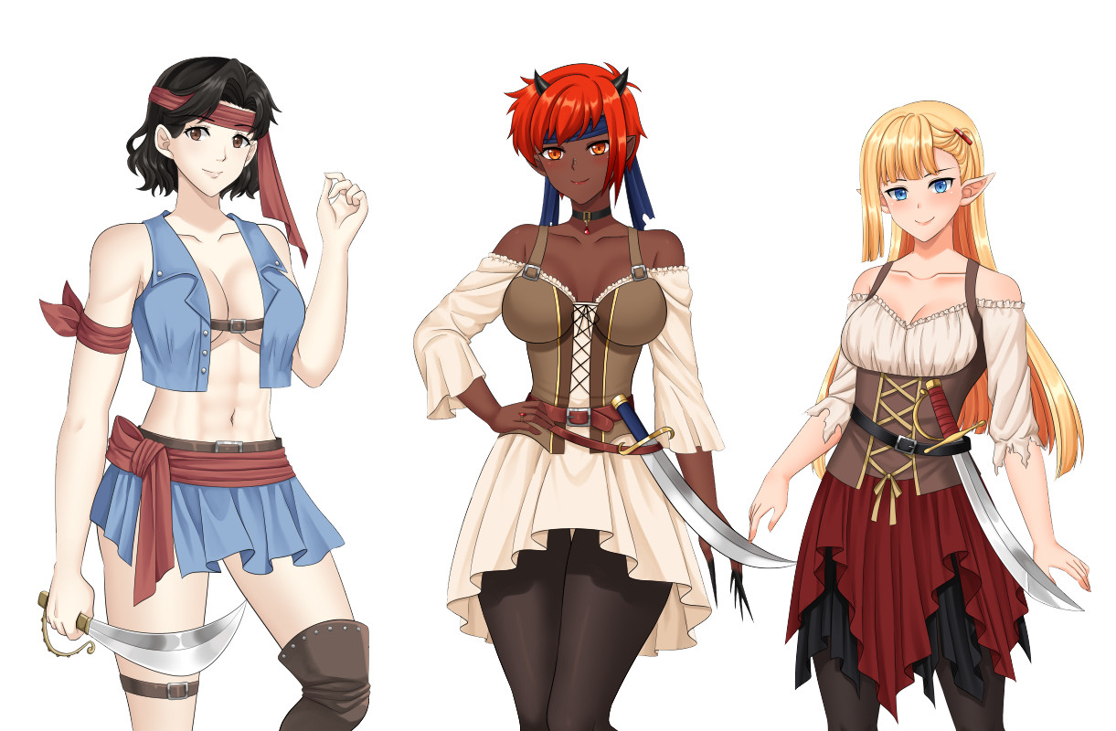 the pirate outfits turned out great... 😍but I can't wait to see the others, like the maid outfits! #visualnovel #indiegame #cutegirls #pirates