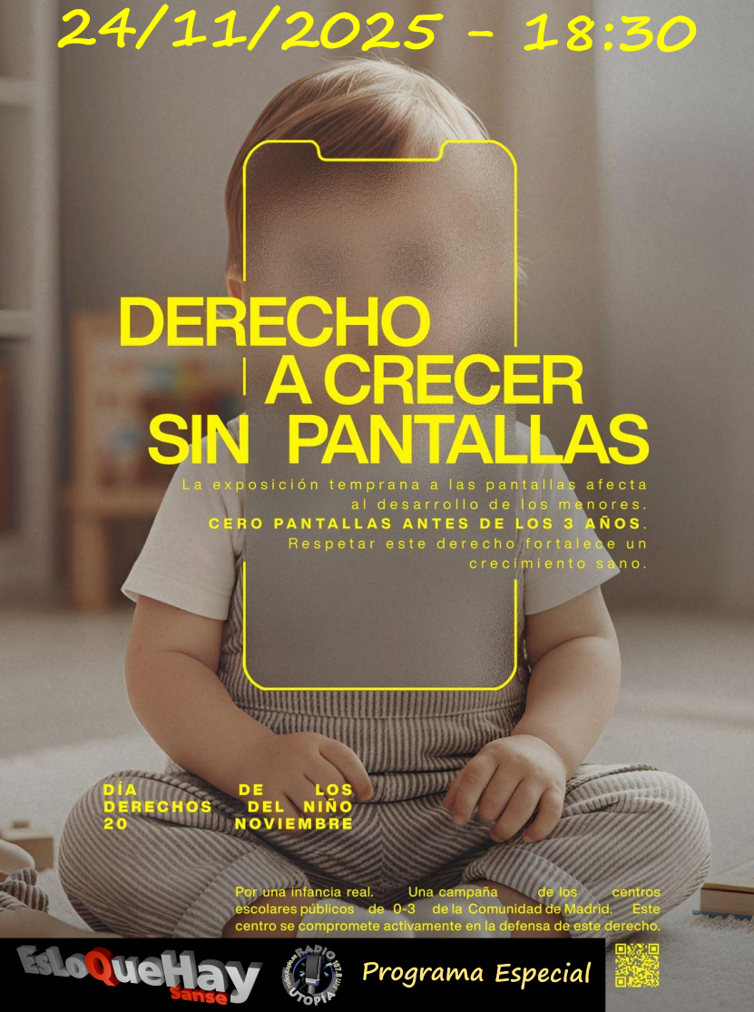 Es lo que hay Sanse como el año pasado por la cercanía del día internacional del niño, cedemos el espacio a los que se merecen todo, con un especial sobre la problemática de las pantallas en la Infancia.