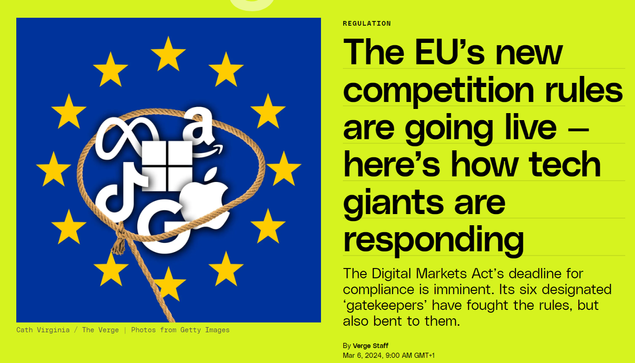 Tomorrow, March 7th, the #DMA enters into effect. This post by @verge provides a great overview of the #compliance #policies chosen by the #Designated #Gatekeepers in the #EU ๐