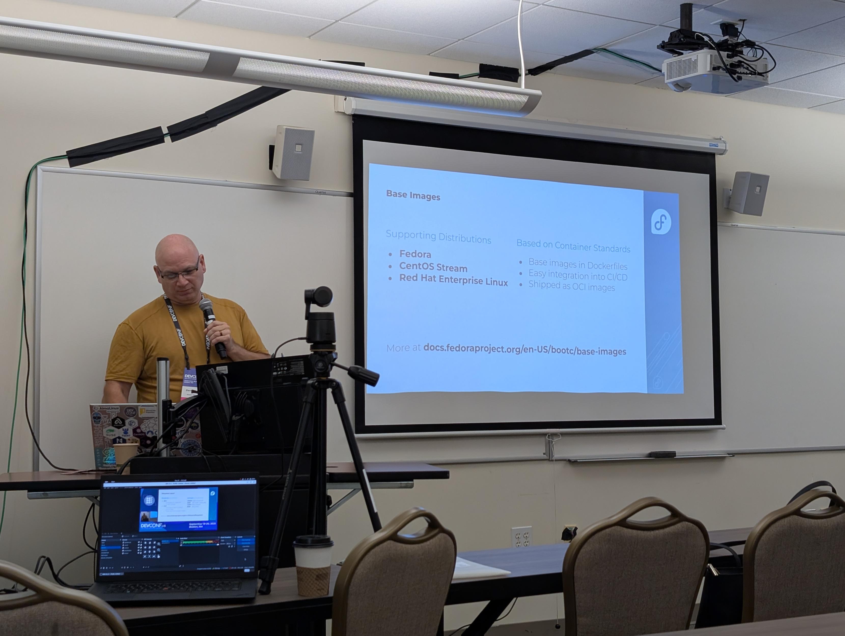 Listening to @davdunc talk about Fedora and image mode using bootc!