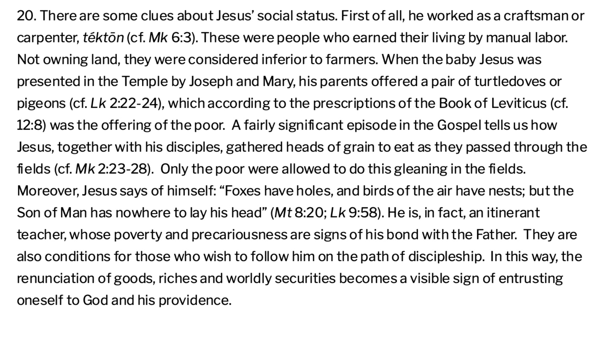 Armen zijn geen objecten van liefdadigheid maar subjecten die hun eigen leven kunnen vormgeven. De paus hanteert een breed armoedebegrip en vraagt om zorg voor zieken, gevangenen en migranten. Christelijke liefde kent geen grenzen en vraagt om zowel gebed als concrete actie.