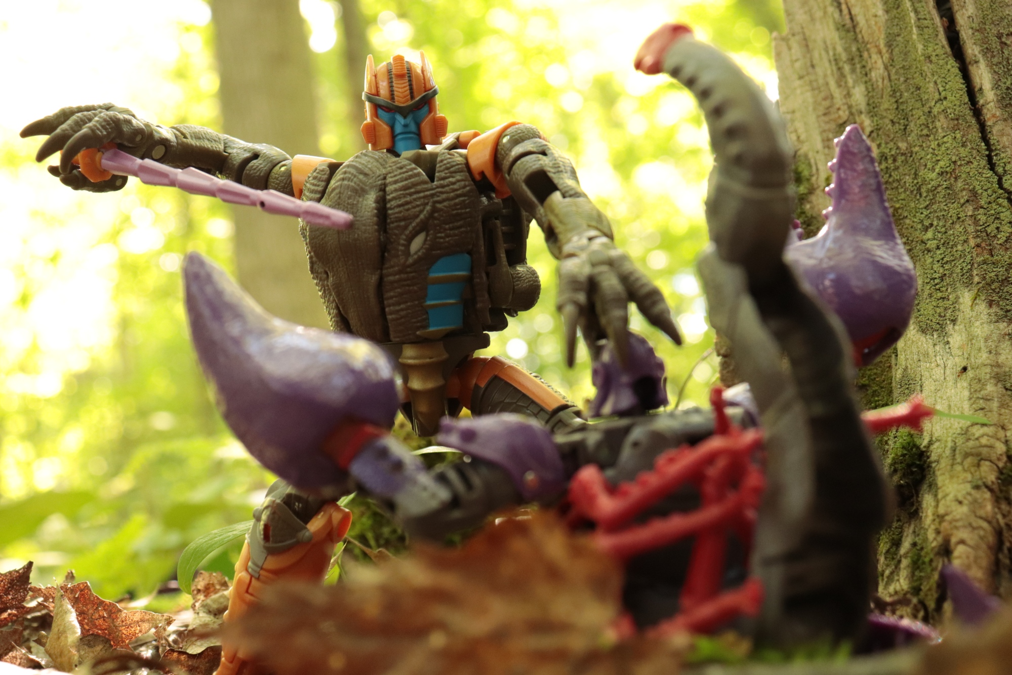 Todays #workout post is with #Dinobot and #Scorponok! Dinobot DID infact smell incompetence. . . . . . #transformerswarforcybertronkingdom #beastwars #toyphotography #photography #predacon #maximal #nature #naturephotography #woods #goblincore #swamp #fitness #weightlifting #weightlossjourney