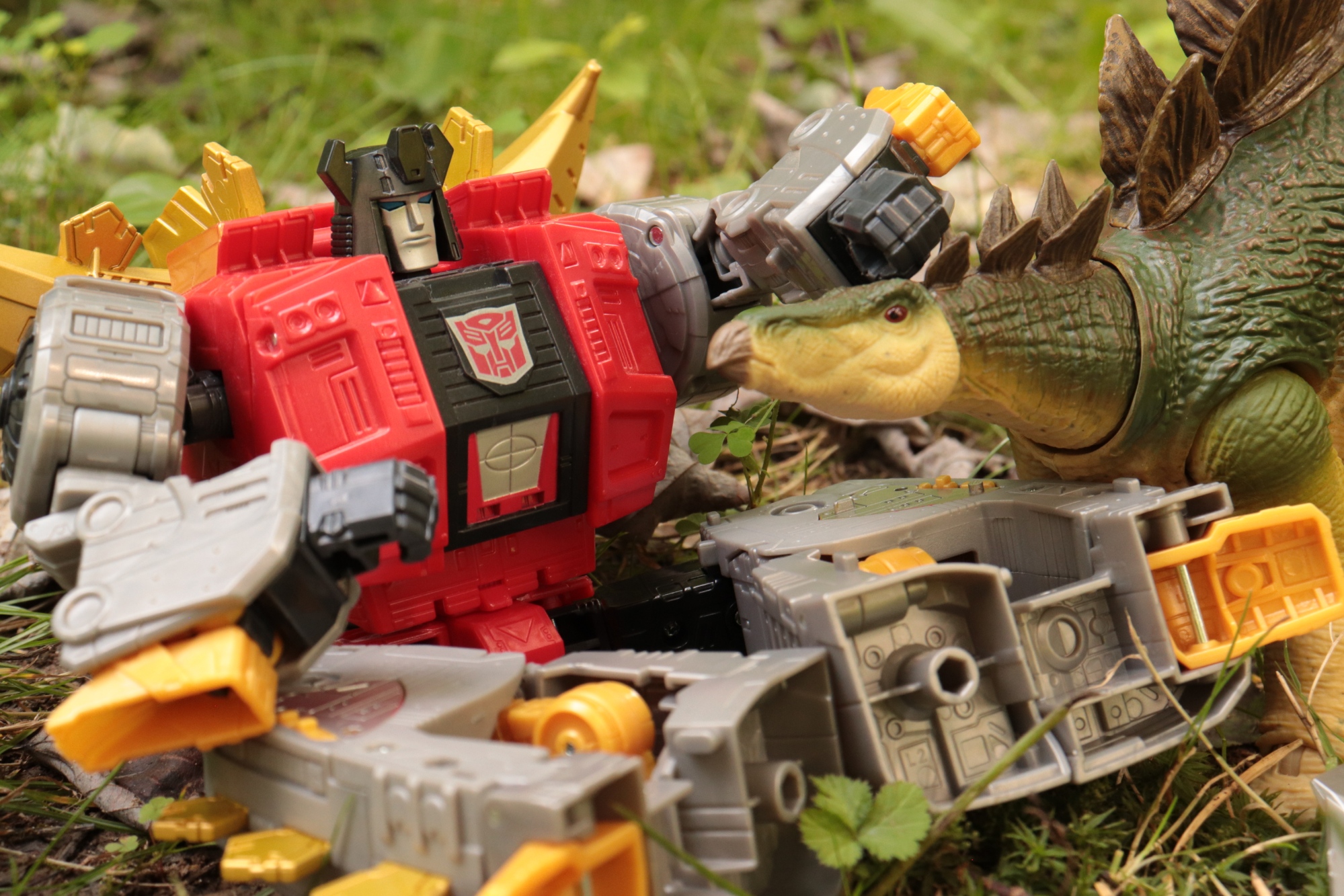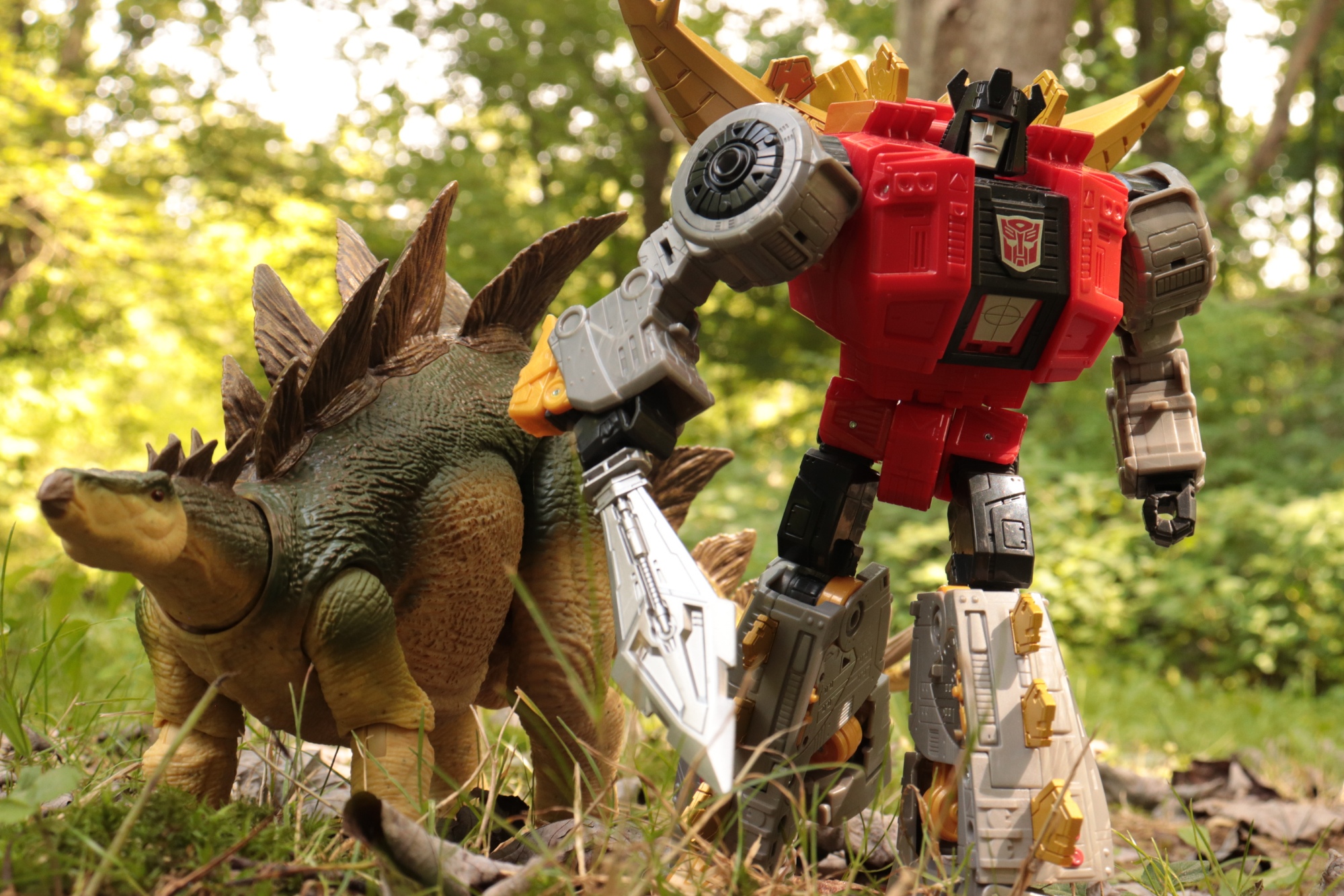 Snarl and his new friend. . . . . #transformers #toyphotography #photography #outdoorphotography #dinosaur #dinobot #snarl #autobot #outdoorphotography #nature #toys #actionfigures #hammondcollection #stegosaurus
