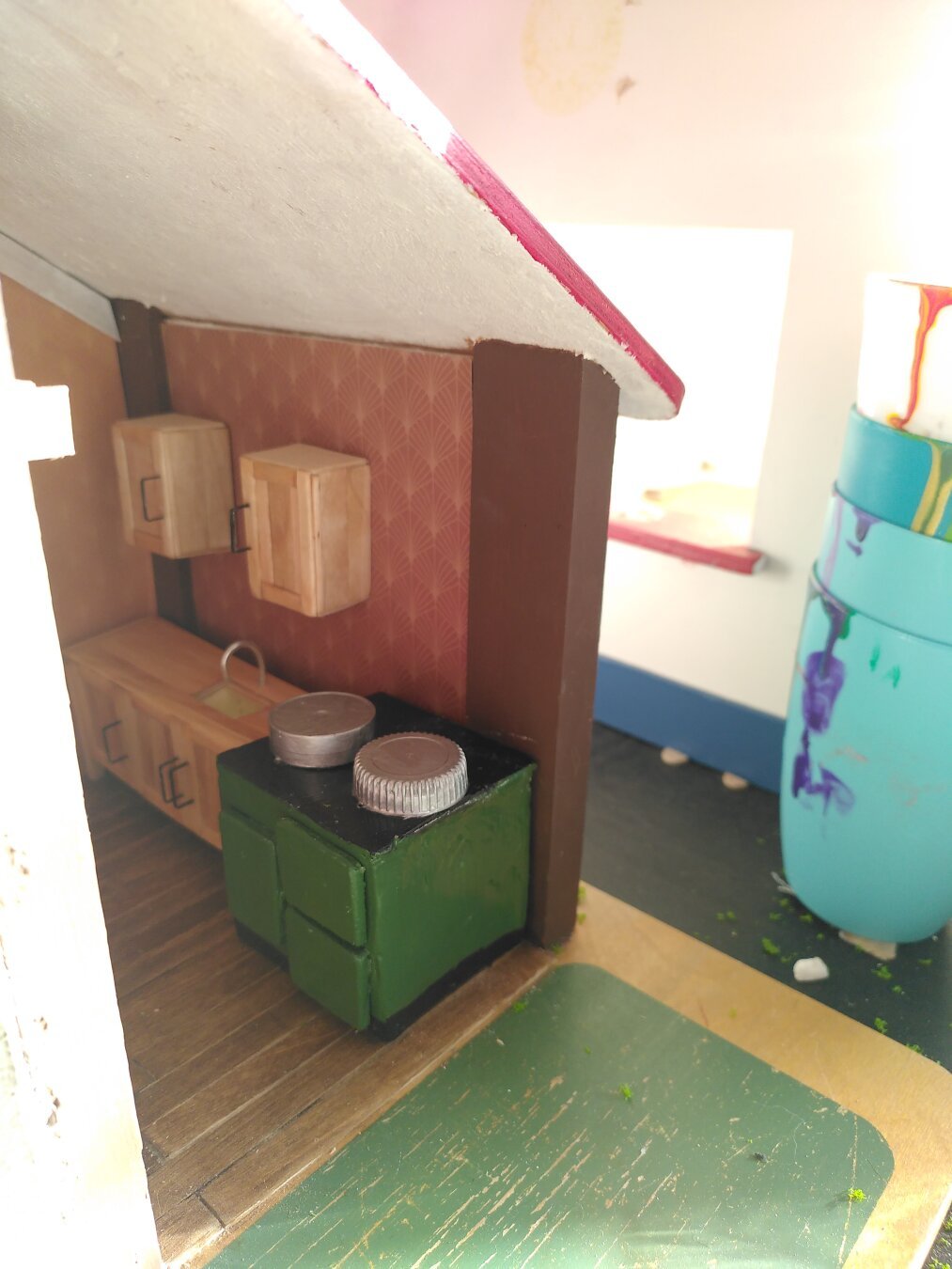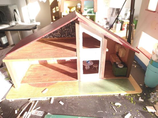 I just finished this little spooky dollhouse/diarama--a few days later than intended. It was from a kit from Michael's (except the Pride flag).