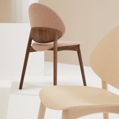 The Fleuron chair references structural buttresses that reinforce walls through a grafted pad on the rear of the backrest.