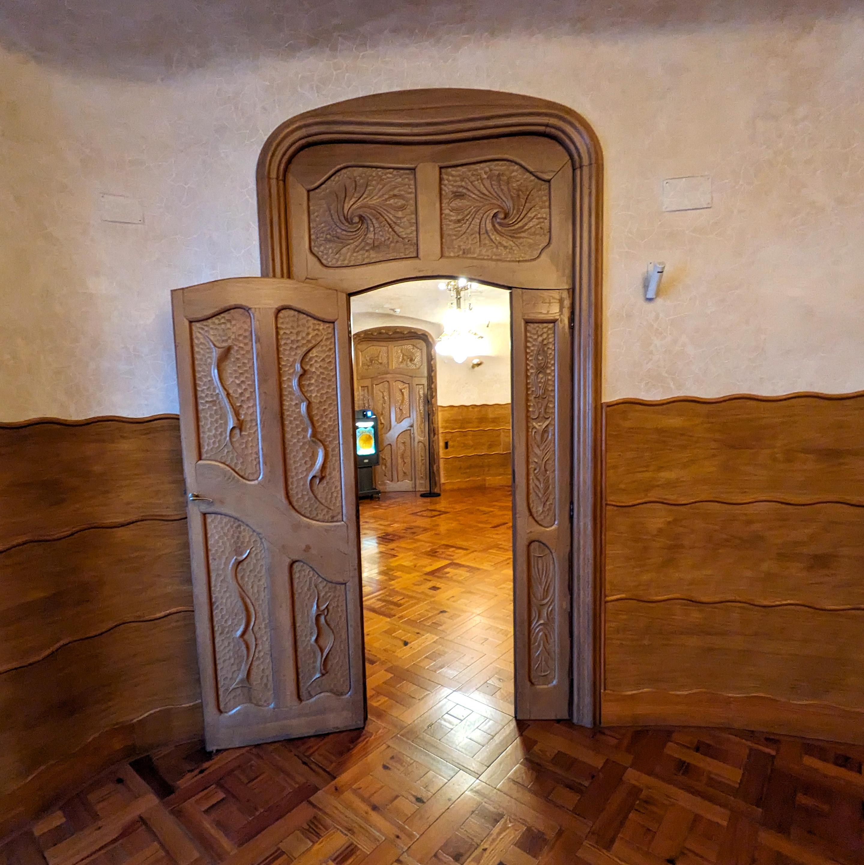 Decorative carving on door.