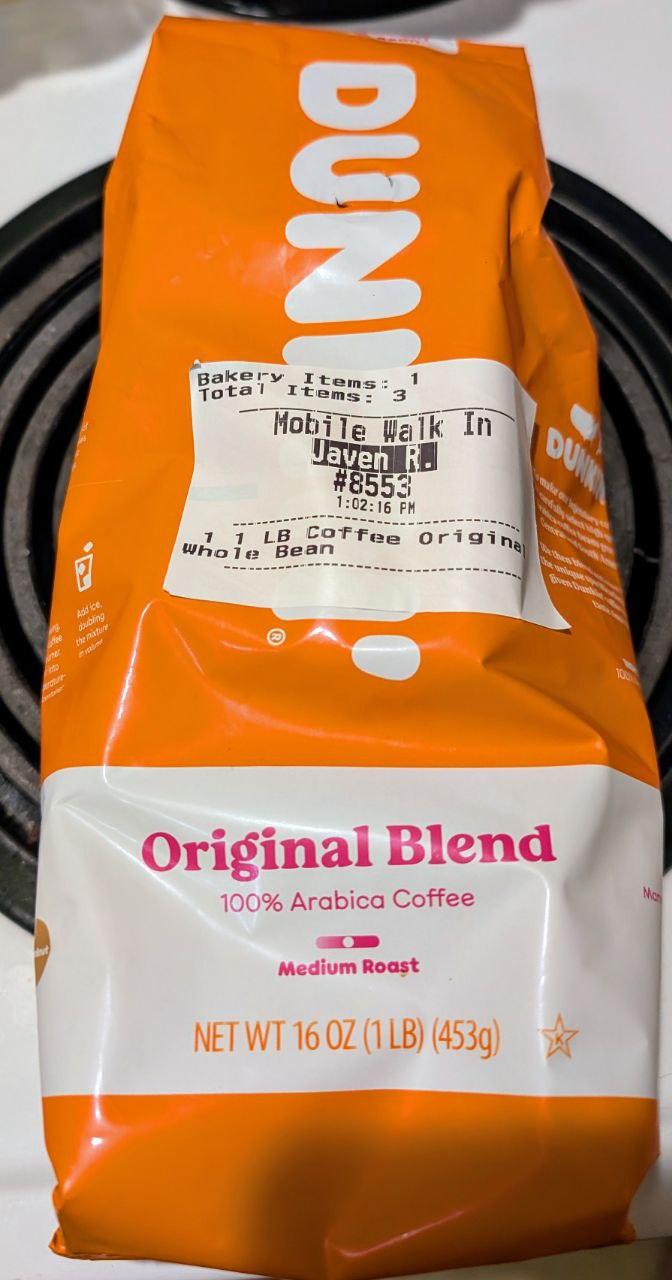I don't usually buy Dunkin' coffee, but Javen (see label) was in there anyway and needed a bag.