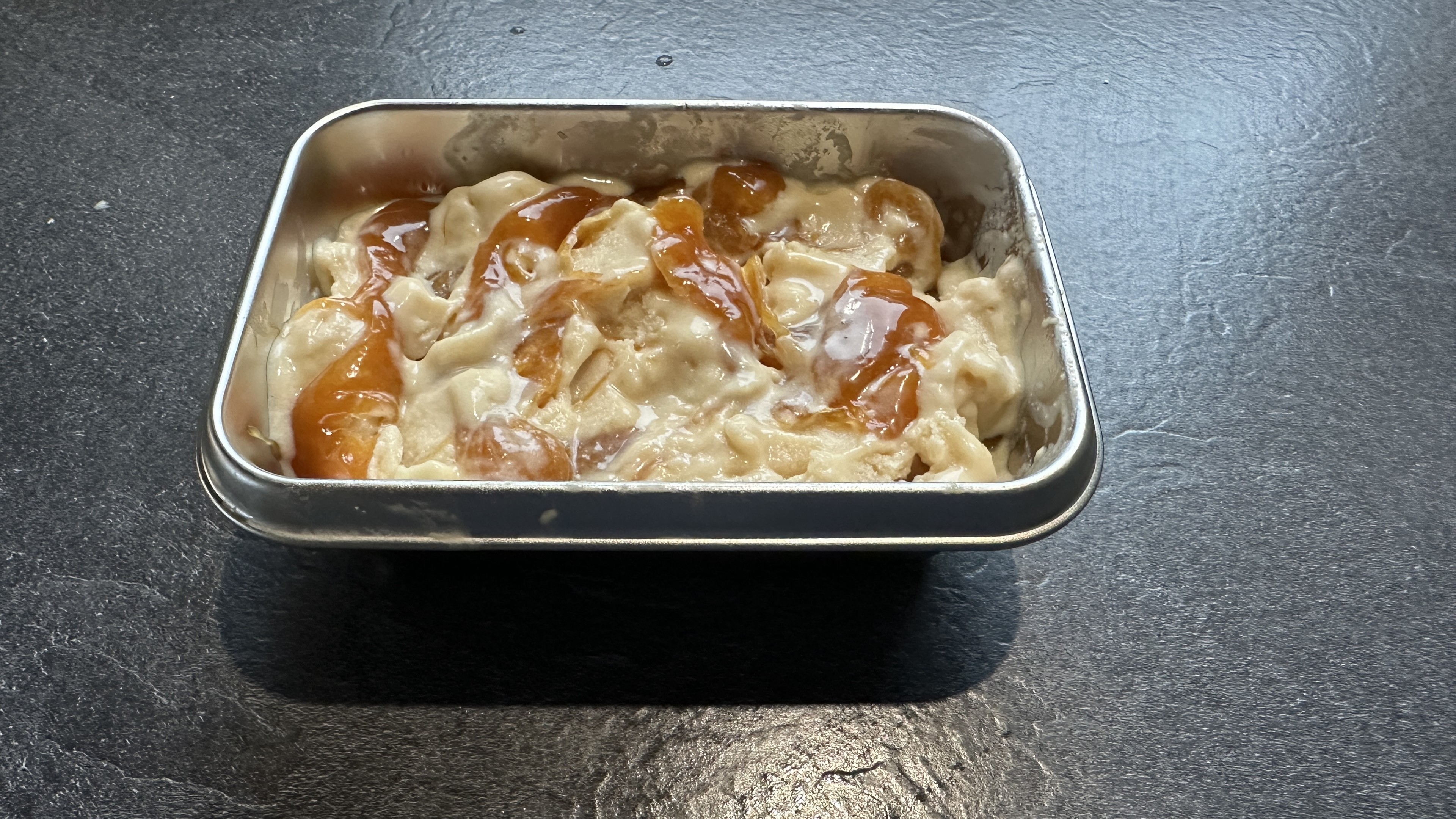 Das gestrige Aprikosen-Rosmarin-Eis ist so lala, schmeckt eher muffig als fruchtig-frisch. Ich vermute, es liegt an der veganen Soja-Creme.