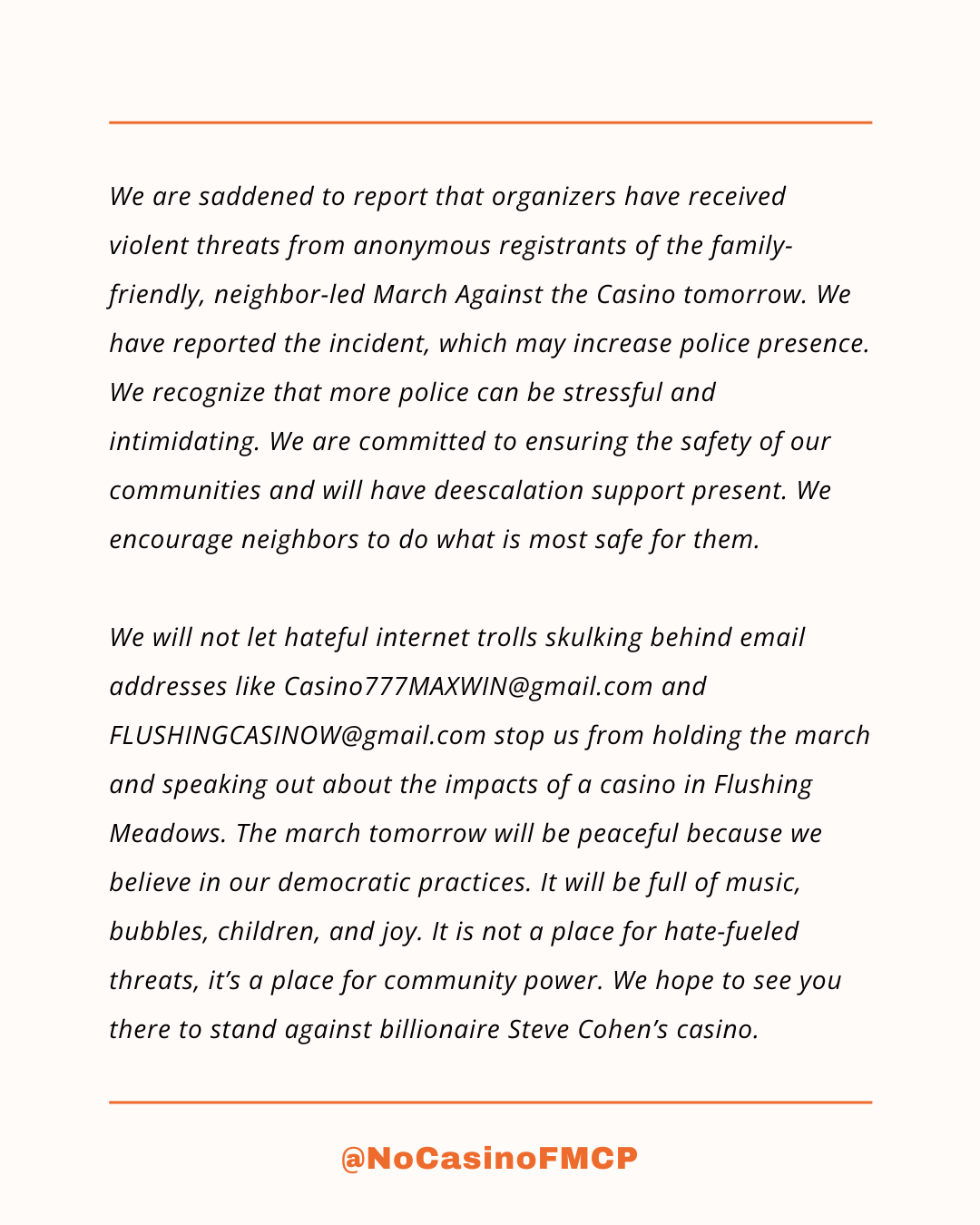 #Queens #QueensNY #NoCasino #Corona #JacksonHeights #Flushing #EastElmhurst #Elmhurst #NYC #FightTheOligarchy