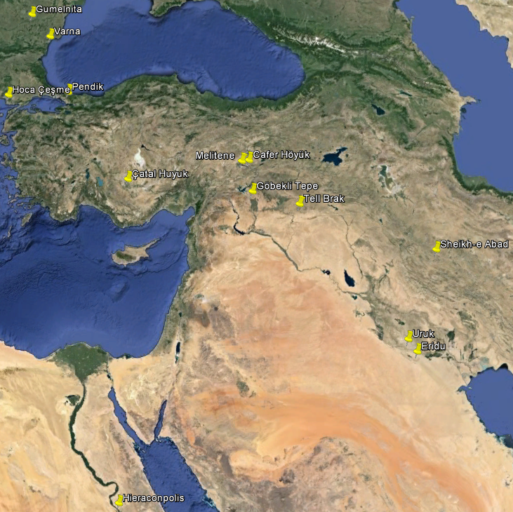#akkerbouw #Arslantepe #Çatalhöyük #bakermat #CaferHöyük #Chalcolithicum #domesticatie #Eridu #Eufraat #ezel #GöbekliTepe #geit #goud #GumelnițaCultuur #Hierakonpolis #HocaÇeşme #Jiroft #Kaukasus #koper #Kopertijd #Melitene #nijverheid #paard #Pendik #SheikhEAbad #TellBrak #Tigris #Uruk #Varna #veeteelt #wijn