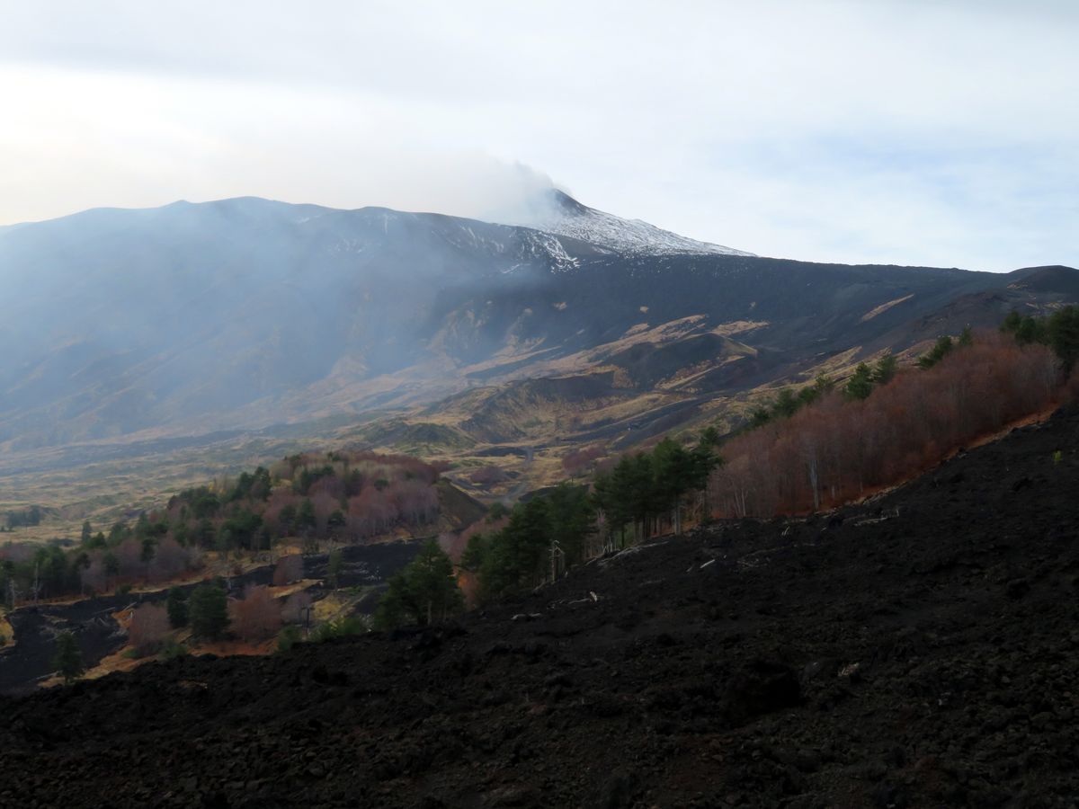 – La première montre la situation avant l'éruption, le 22 novembre. On distingue très bien les laves noires des deux volcans.