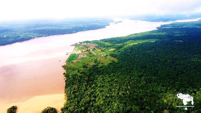 #ImagenesDeNuestroEsequibo La antigua Prisión de Mazaruni, a la izquierda el majestuoso río del mismo nombre y al fondo a la derecha el río Cuyuni que baña el Estado Bolívar #EsequiboEsVenezuela #MiMapa #6Dic #Venezuela