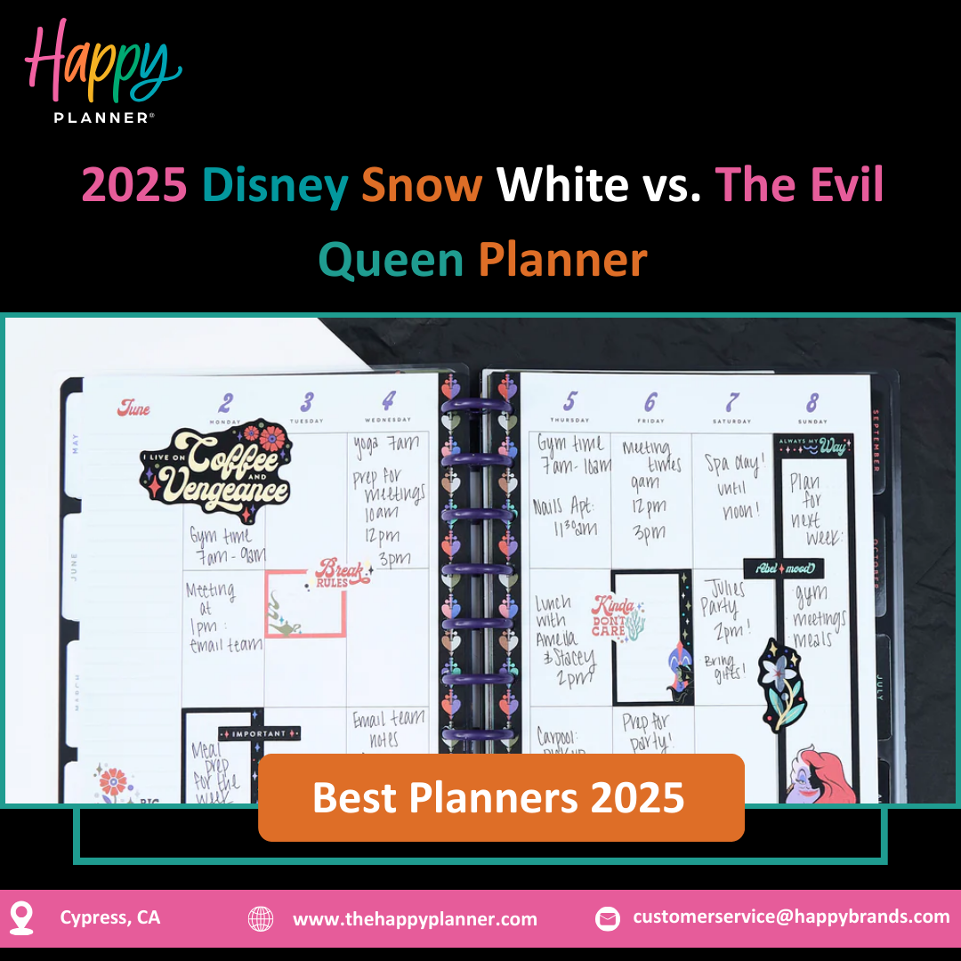 Step into a storybook every day with the Disney Snow White vs. Evil Queen Happy Planner Classic size edition. Filled with 12 months of dated spreads, enchanting Disney designs, and a flexible vertical layout, it’s the perfect planner to balance work, school, and personal life while keeping a touch of magic in your daily routine. Shop now at http://bit.ly/41ndZFG