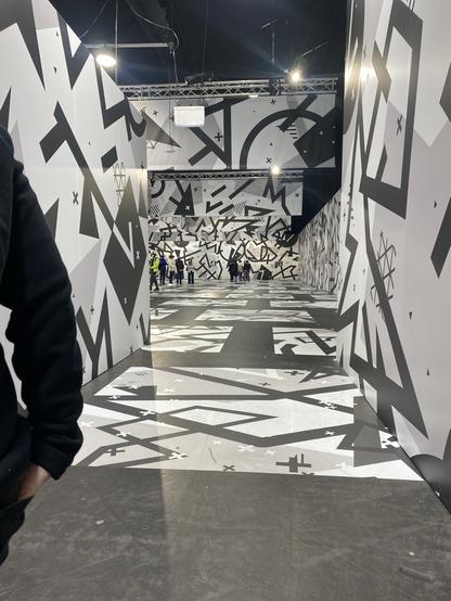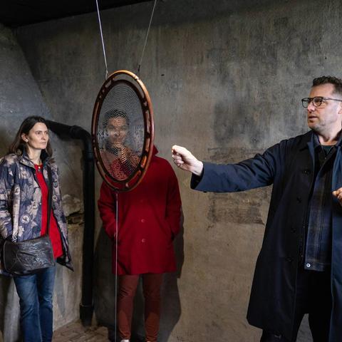 Produced by excurio in France, it uses Vive technology. The photo shows the odd dazzle patterns that seem to orientate the 3D headsets. Also - personal surround sound without headphones! Clever. #vr #history #experiencedesign