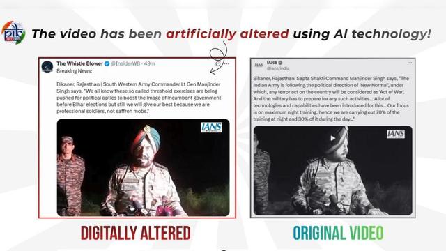 PIB exposes an AI-generated fake video falsely quoting Lt Gen Manjinder Singh. Learn the truth about the Indian Army's preparedness and training. https://english.mathrubhumi.com/news/india/pib-fact-check-fake-ai-video-lt-gen-manjinder-singh-ddpfvk2n?utm_source=dlvr.it&utm_medium=mastodon #FactCheck #indianarmy #PIB #fakevideo