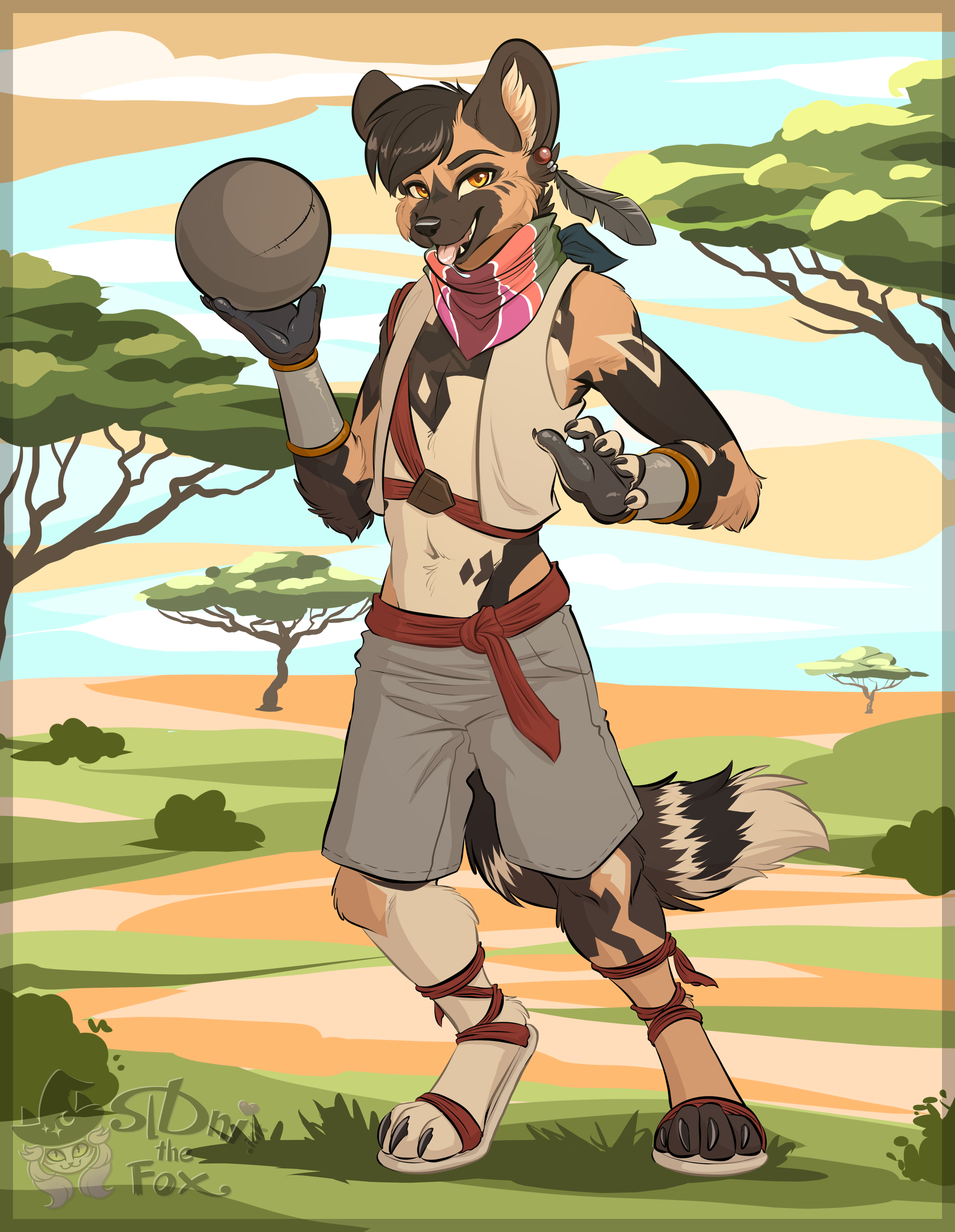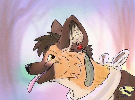 #furry #furryart #art #Paintrazim #africanwilddog #canine #canid #anthro #bandanna #brownfur #earring #featherjewelry #tanfur #pawpads