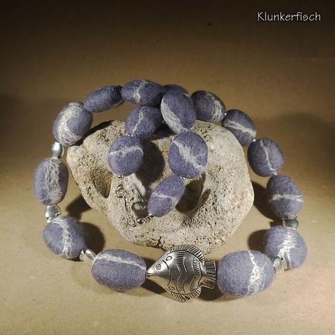 #Fisch #Halskette #Kette #Fischkette #Halsschmuck #Filzschmuck #handmade #handgefilzt #Filzkette #Silberfisch #Klunkerfisch #Filzstein #Stein #Kieselstein