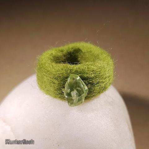Fรผr die Filz-Kiesel-Halskette *Fisch & Stein* wurde ein groรer grauer Kieselstein aus Schafwolle von Hand gefilzt. Unter dem Stein schwebt ein groรer, detailliert gearbeiteter Fisch aus Tibet-Silber.