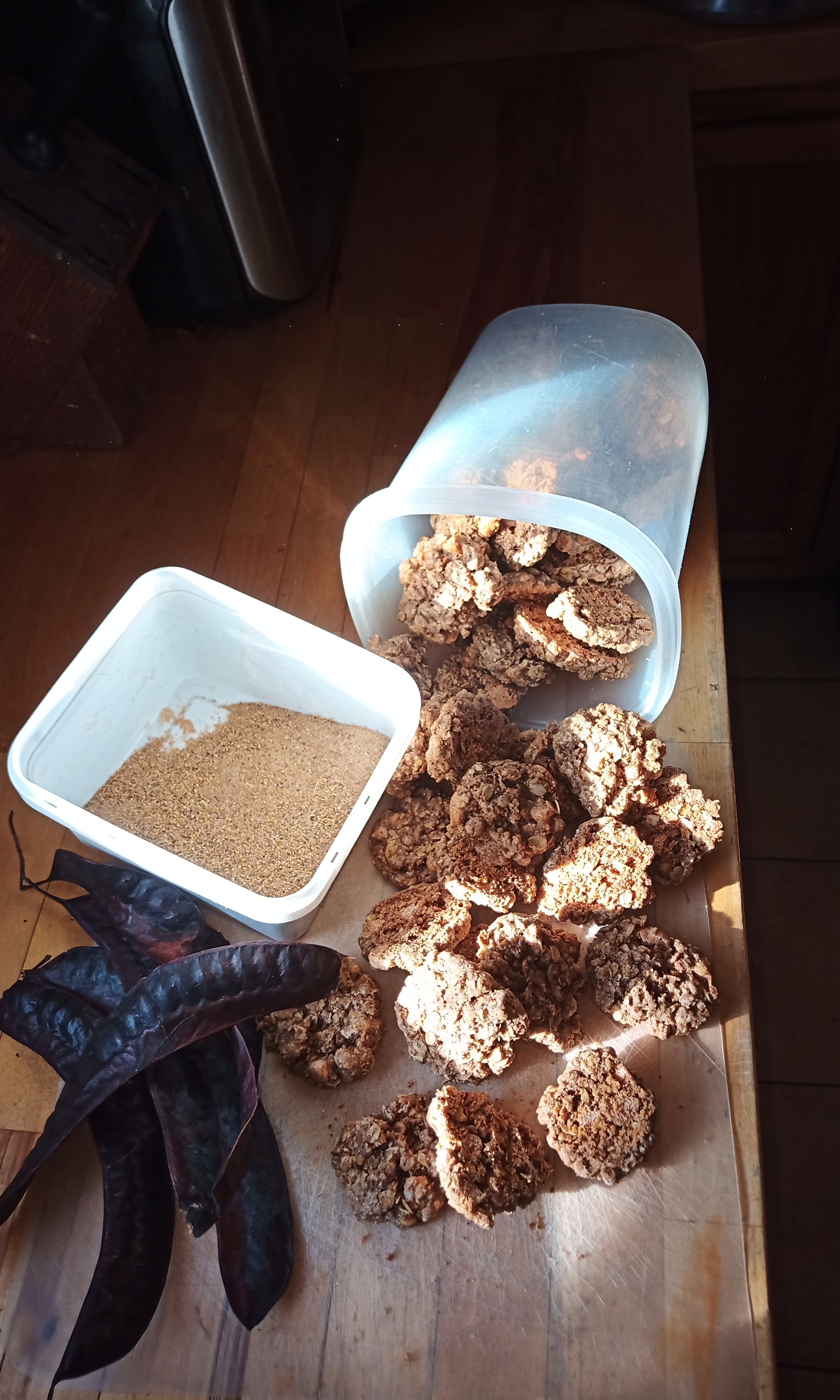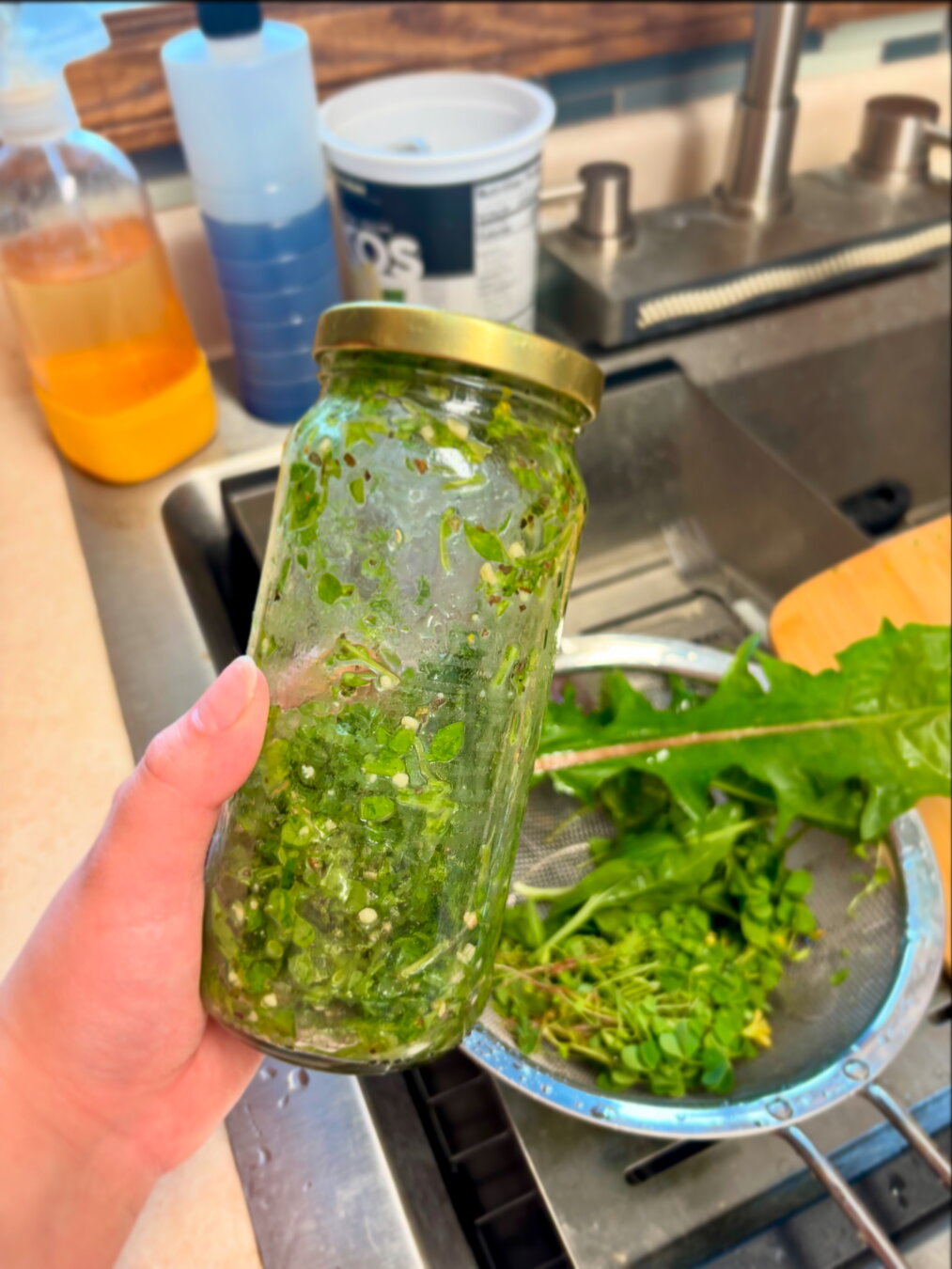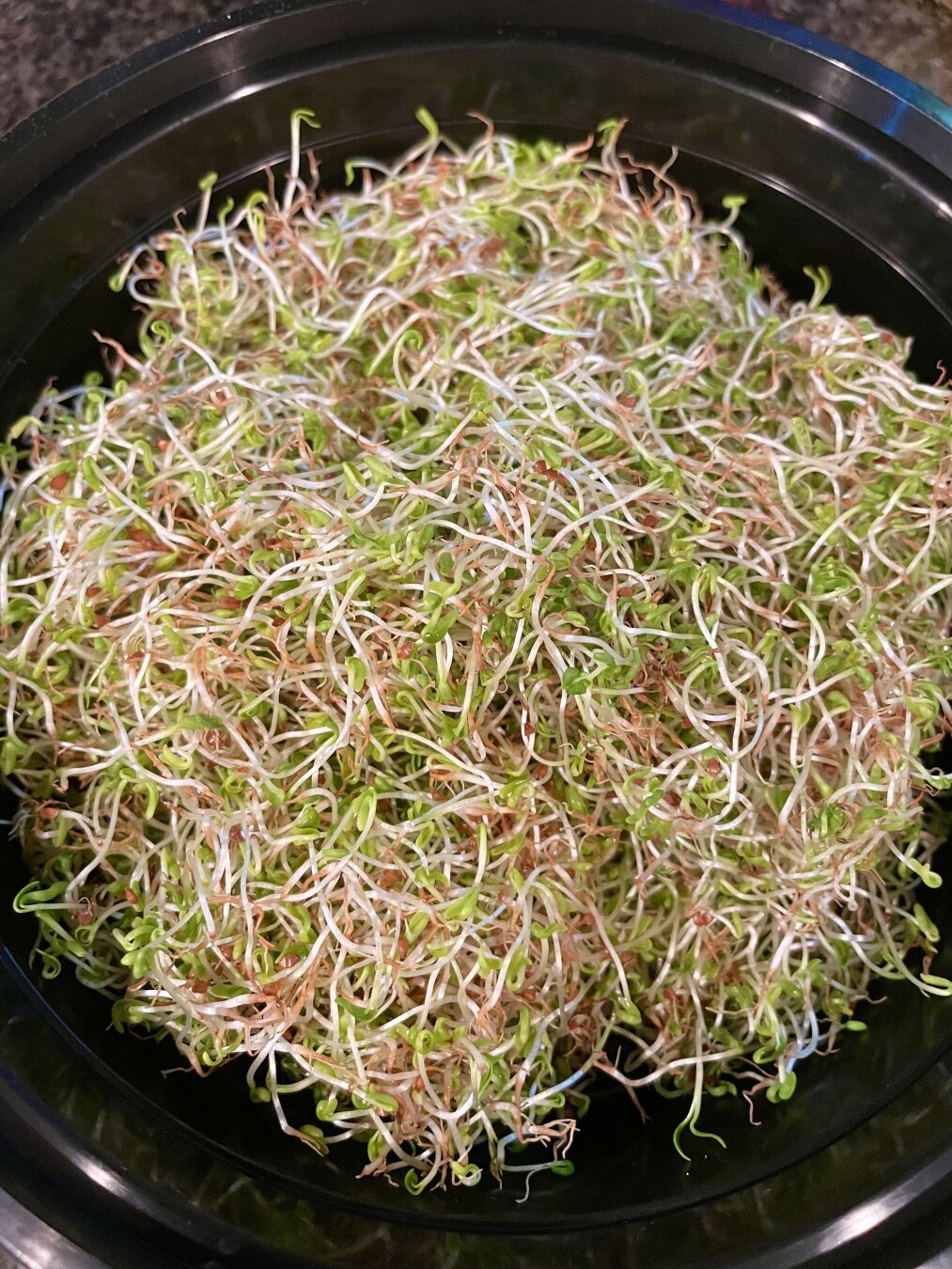 The young leaves of Rumex crispus (curly dock) are great in a salad, but I wanted to experiment a bit this season with the seeds. Most people who forage this part of the plant grind the seeds into a flour to use for crackers or alongside other flours for various baked goods. But those same people also remark on its bitterness in those applications. I’ve been sprouting seeds and beans at home all year and have been thinking about how I can make that a more sustainable practice (such as foraging my own seeds to sprout), so I figured it would be a worthwhile experiment to see how well curly dock seeds sprout (and how good they taste!). Especially since curly dock grows all over the place out here, often ignored and/or disdained. And it was a success! These photos are in reverse order: days 7, 5, 3, 1, and an initial shot of the seeds/chaff. They took a few days longer than the commercial blends I usually sprout, so I might try a longer soak at first to help with that next time. The flavor is great. Sweeter and not as bitter compared to commercial blends, which took me by surprise. They’re delicate. And a little stringy, but I usually find that to be the case with smaller seeds anyway. And these seeds are quite small. Winnowing didn’t do a whole lot to separate the chaff entirely (maybe too much static between the buckets I was using?), but I found that stirring them in water after rubbing them between my hands helped: most of the seeds sank and the chaff floated to the top. A combination of various sieves might work next time as well. Anything to help catch the papery chaff and let the tiny seeds fall through without too much additional debris.