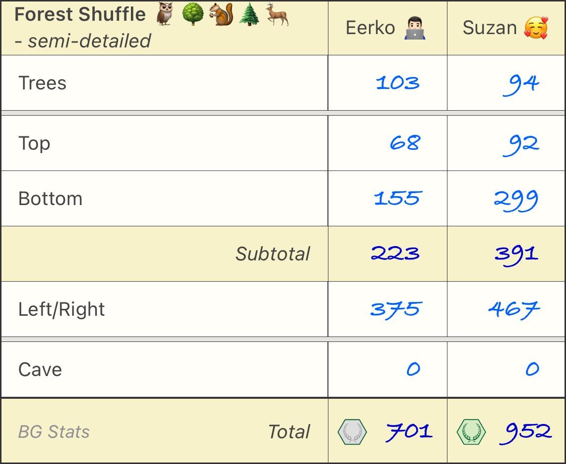 Beaten by one point at my own board game by the 9yo. One! #ForestShuffle