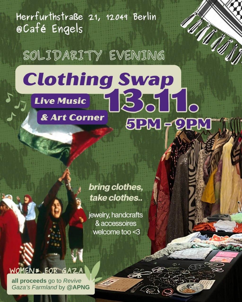 🇵🇸✌🏾Solidaritätsabend & Kleidertausch für Gaza ✌🏾🇵🇸