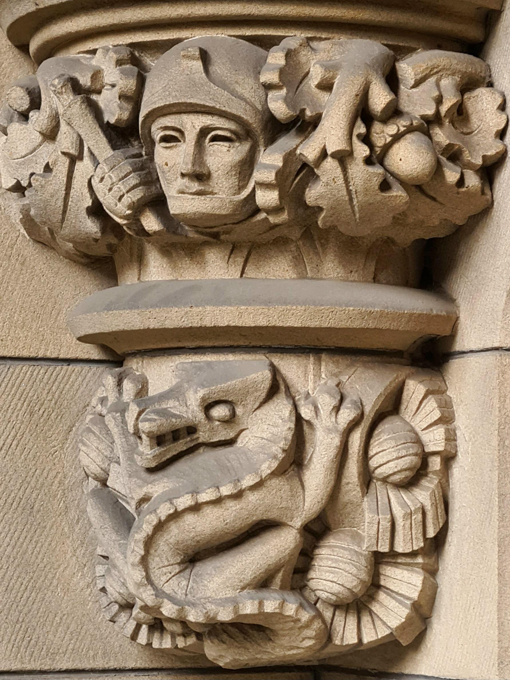 Love this sculpted corbel on the Memorial Chapel at Glasgow University. It was created by Archibald Dawson in the 1920s.