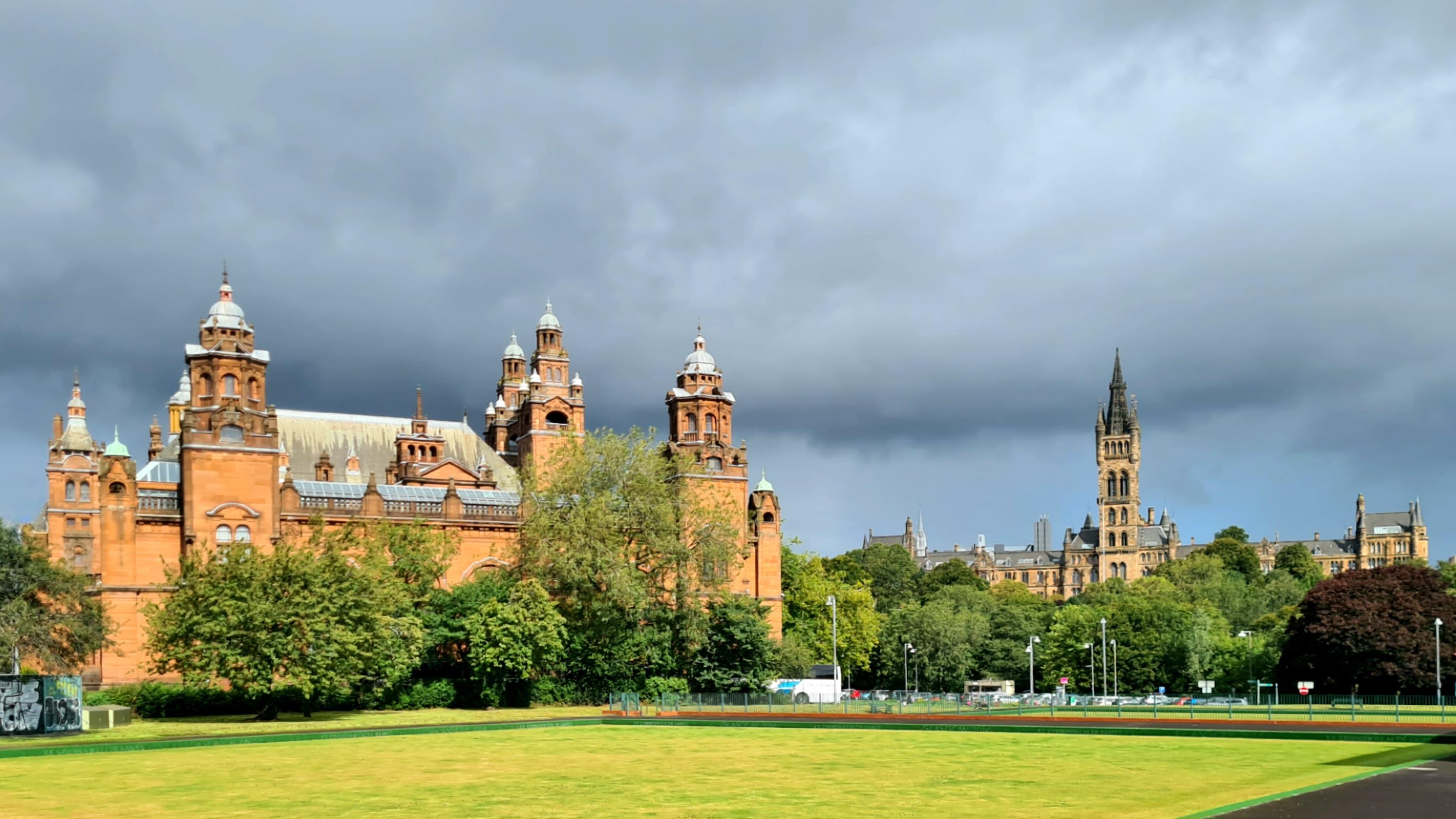 Kelvingrove Art Gallery and Glasgow University against a leaden sky on today's lunchtime dog walk.