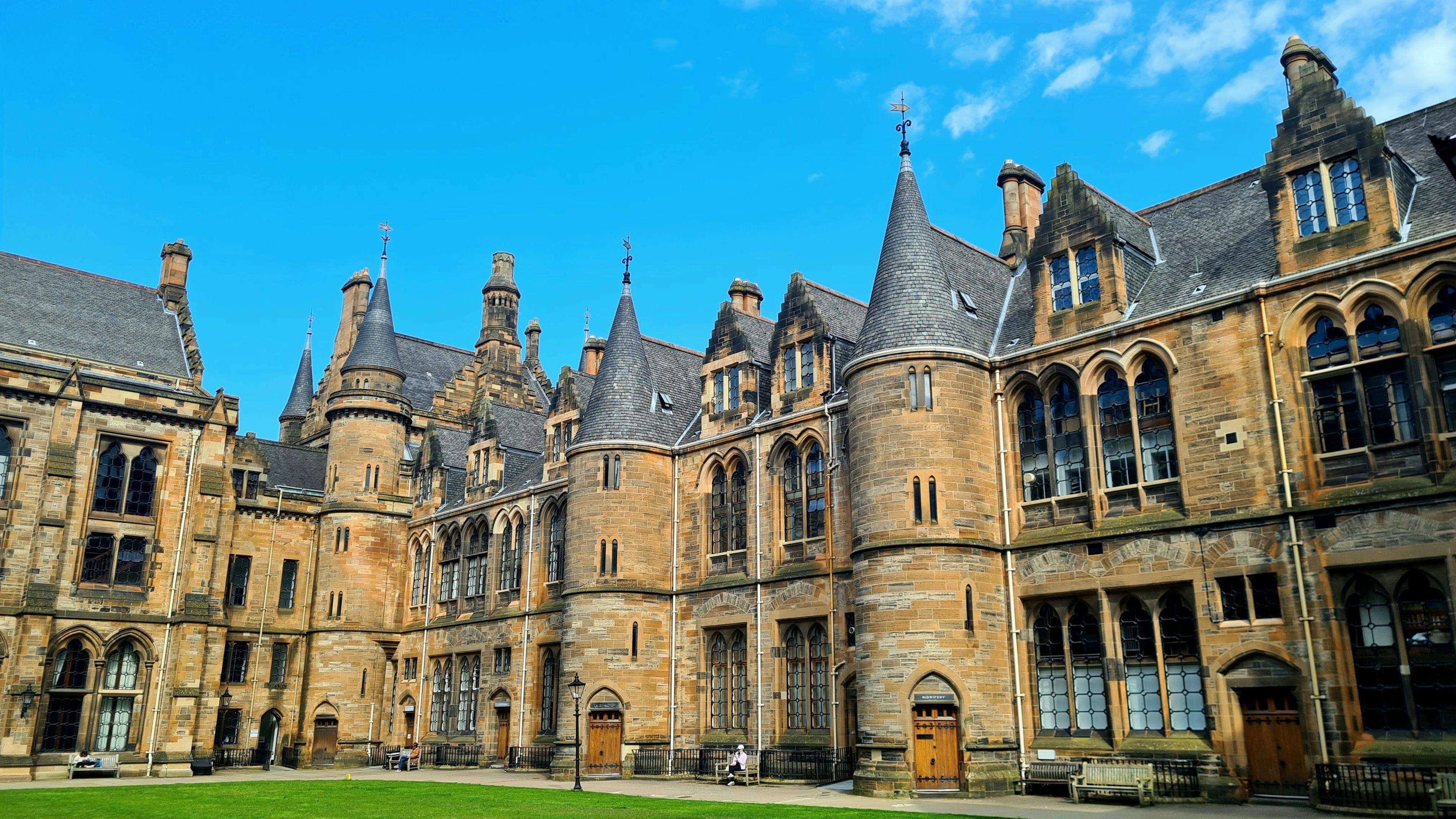 The Victorian Gothic buildings surrounding Glasgow University's eastern quadrangle.