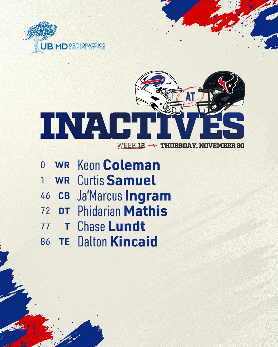 Tonight's inactives for #BUFvsHOU.