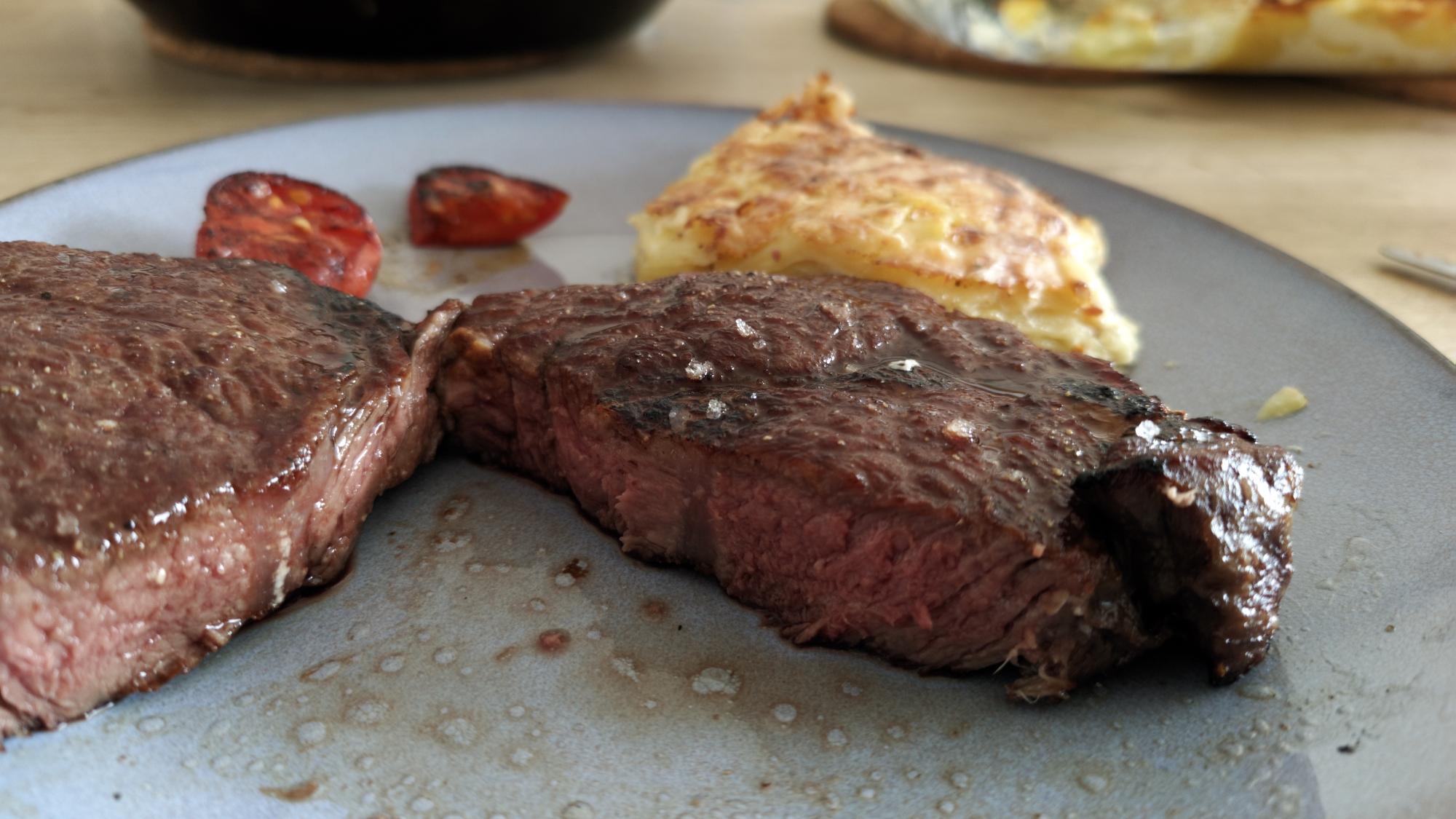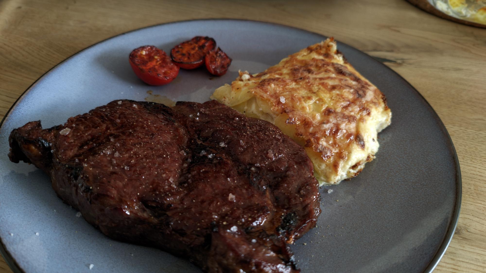 🔥🥩 Das fertige #SimmentalerRind #Entrecote aufm Teller mit #Kartoffelgratin und #Tomaten...