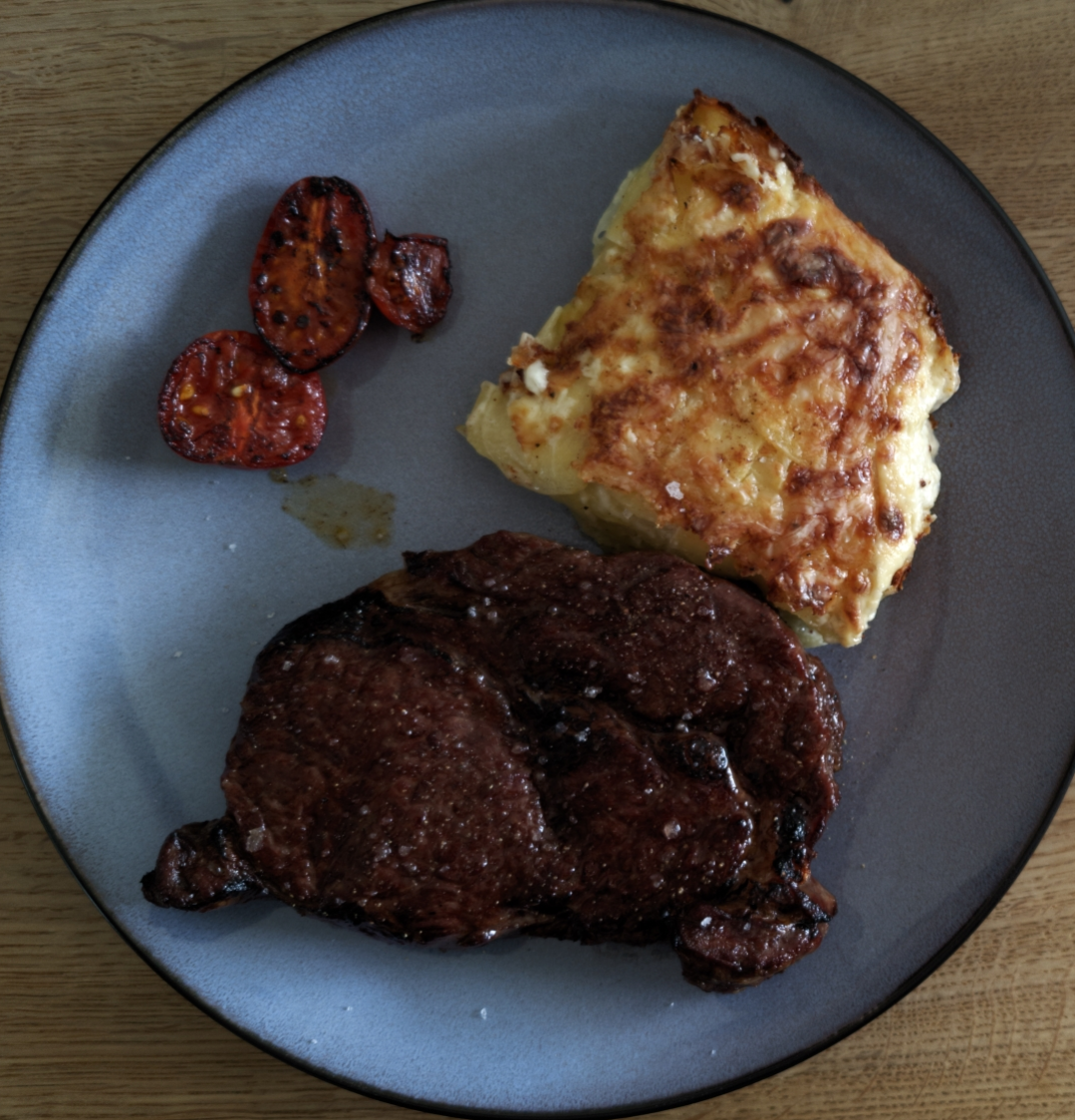 Die #Steaks schwimmen schon und das #Kartoffelgratin ist im Ofen...