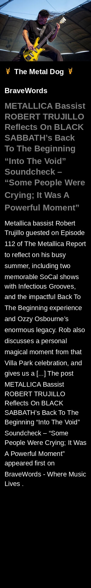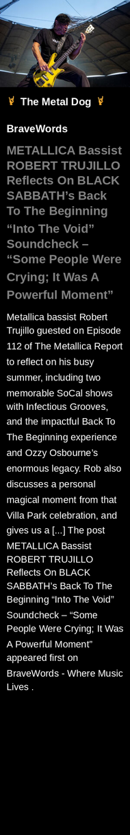 METALLICA Bassist ROBERT TRUJILLO Reflects On BLACK SABBATH’s Back To The Beginning “Into The Void” Soundcheck – “Some People Were Crying; It Was A Powerful Moment”