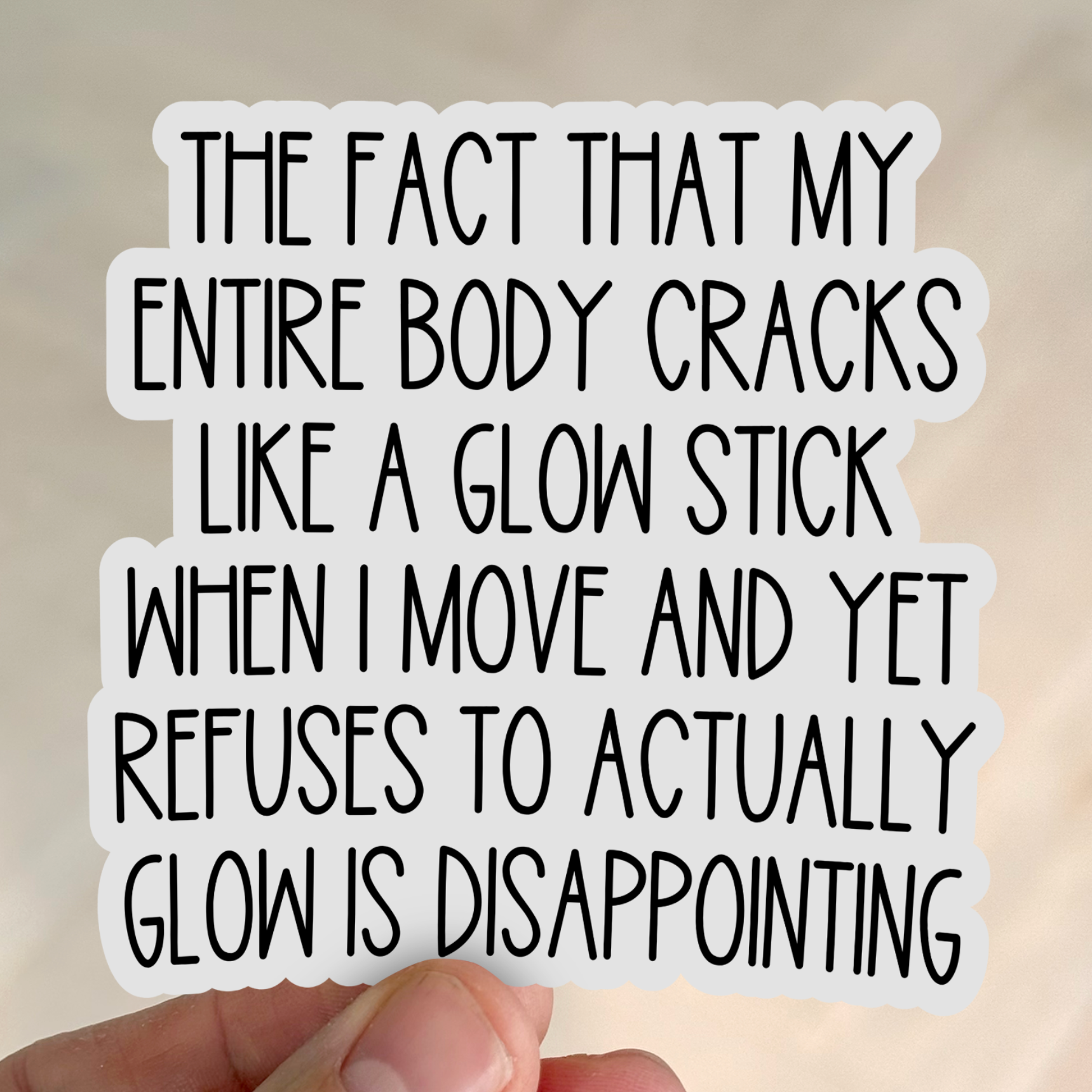 One sticker a day (38/365): The Fact That My Entire Body Cracks Like A Glow Stick When I Move And Yet Refuses To Actually Glow Is Disappointing