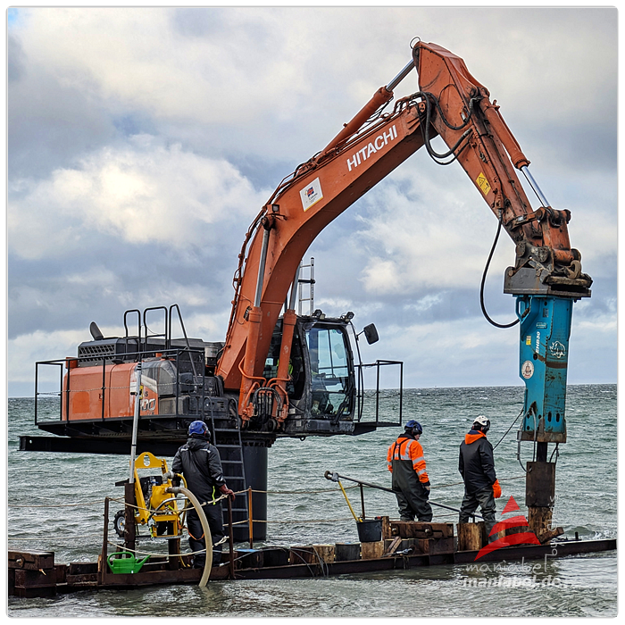Und auch der Buhnenbau auf Graswarder schritt heute fort. Zur Erinnerung: 13 Buhnenreihen bis Ostern 2026. Da gibt es noch viel zu tun...