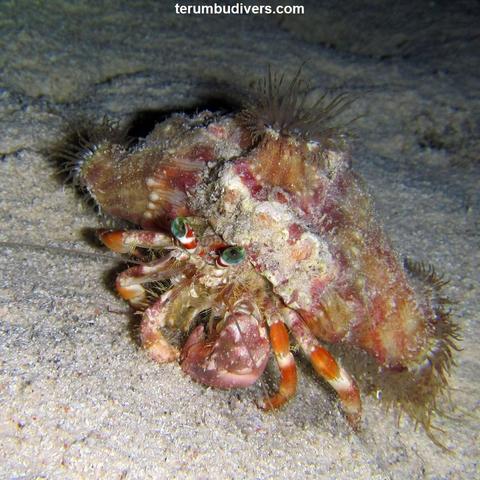 Dardanus calidus, Diogenidae, Large Red Hermit Crab with Calliactis parasitica, Hormathiidae, Hermit Anemone