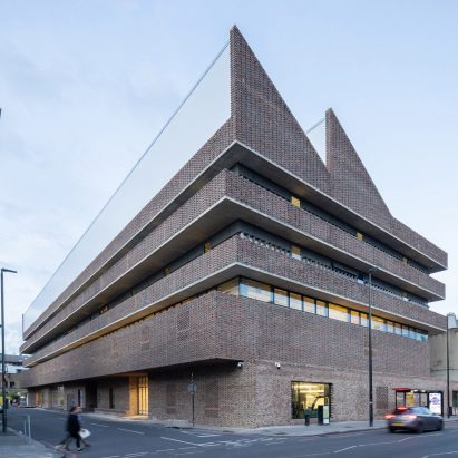 Tactile brown bricks, flexible teaching spaces and public walkways animate the research and studio building that Swiss studio Herzog & de Meuron has created for the Royal College of Art in London.